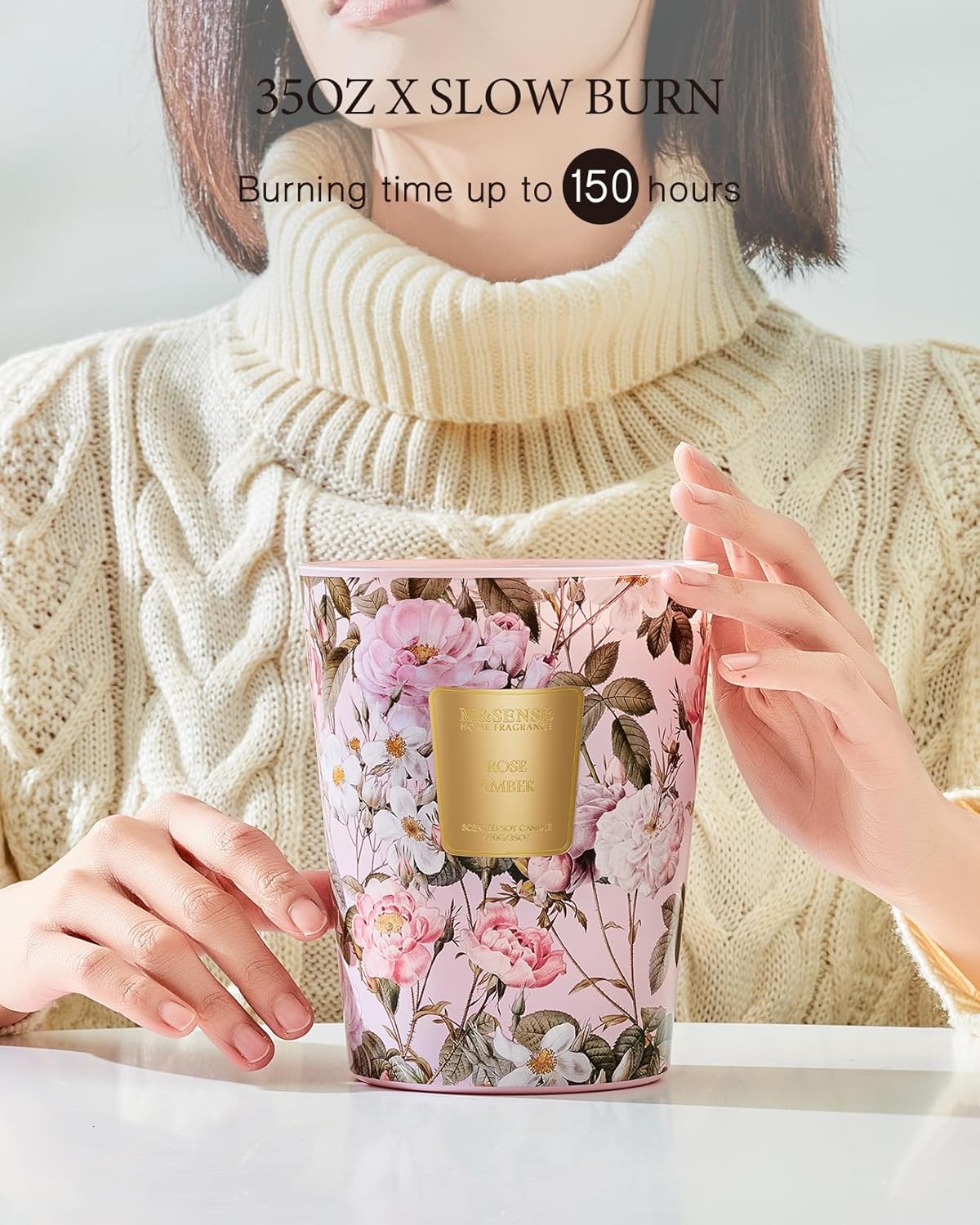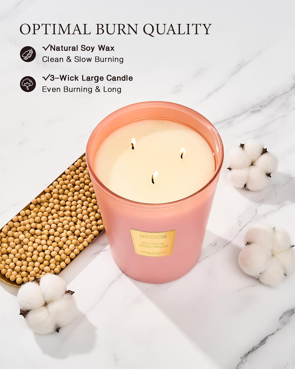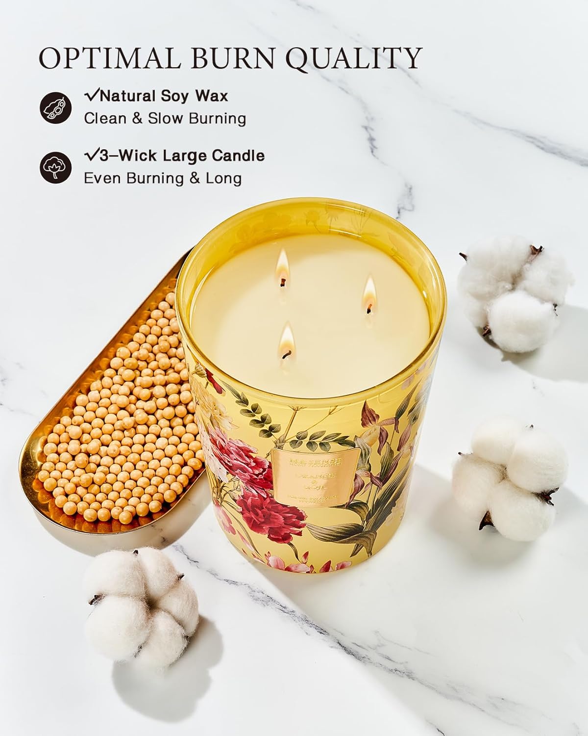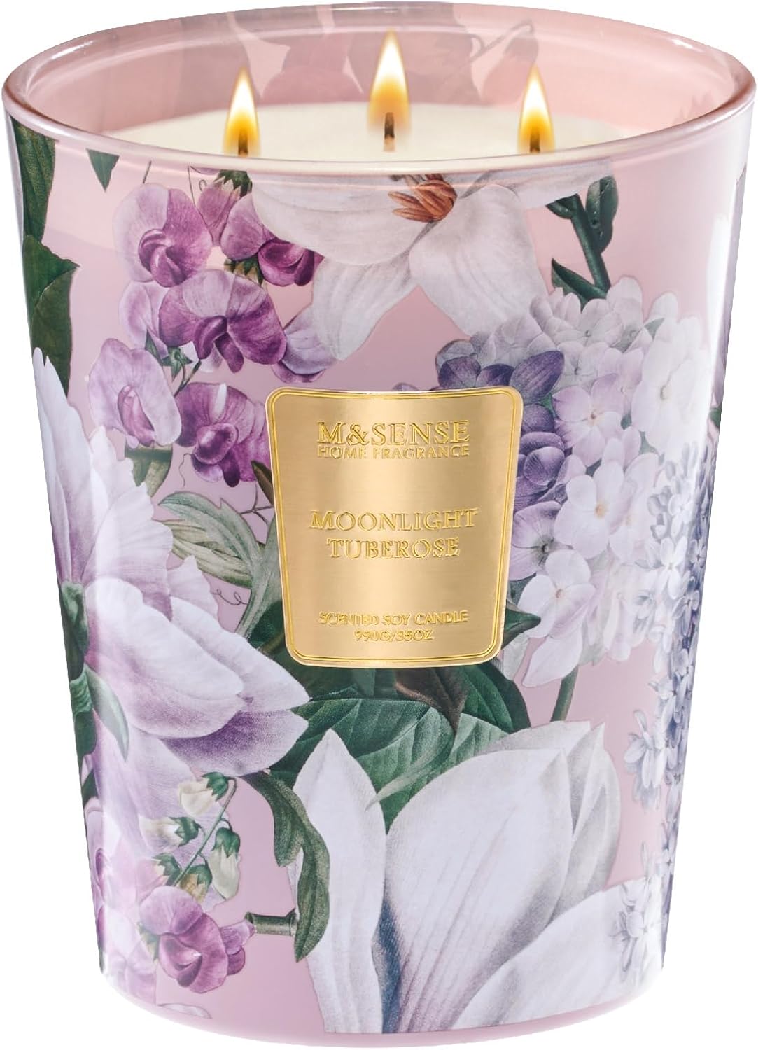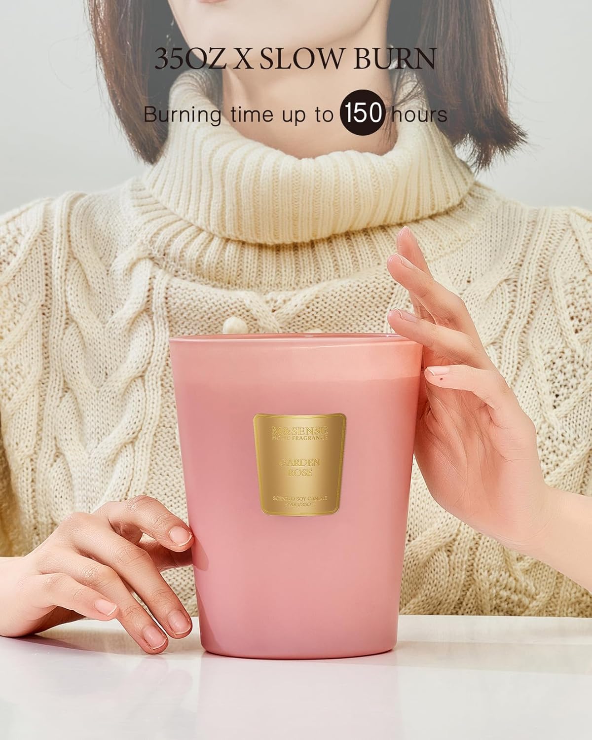 M&SENSE Large Candles Caramel Pumpkin Latte Scented, 3 Wick Natural Soy Candles for Home Scented, 150H Long Lasting Slow Burn Jar Candle 35oz, No Toxic Aromatherapy Candle for Stress Relief