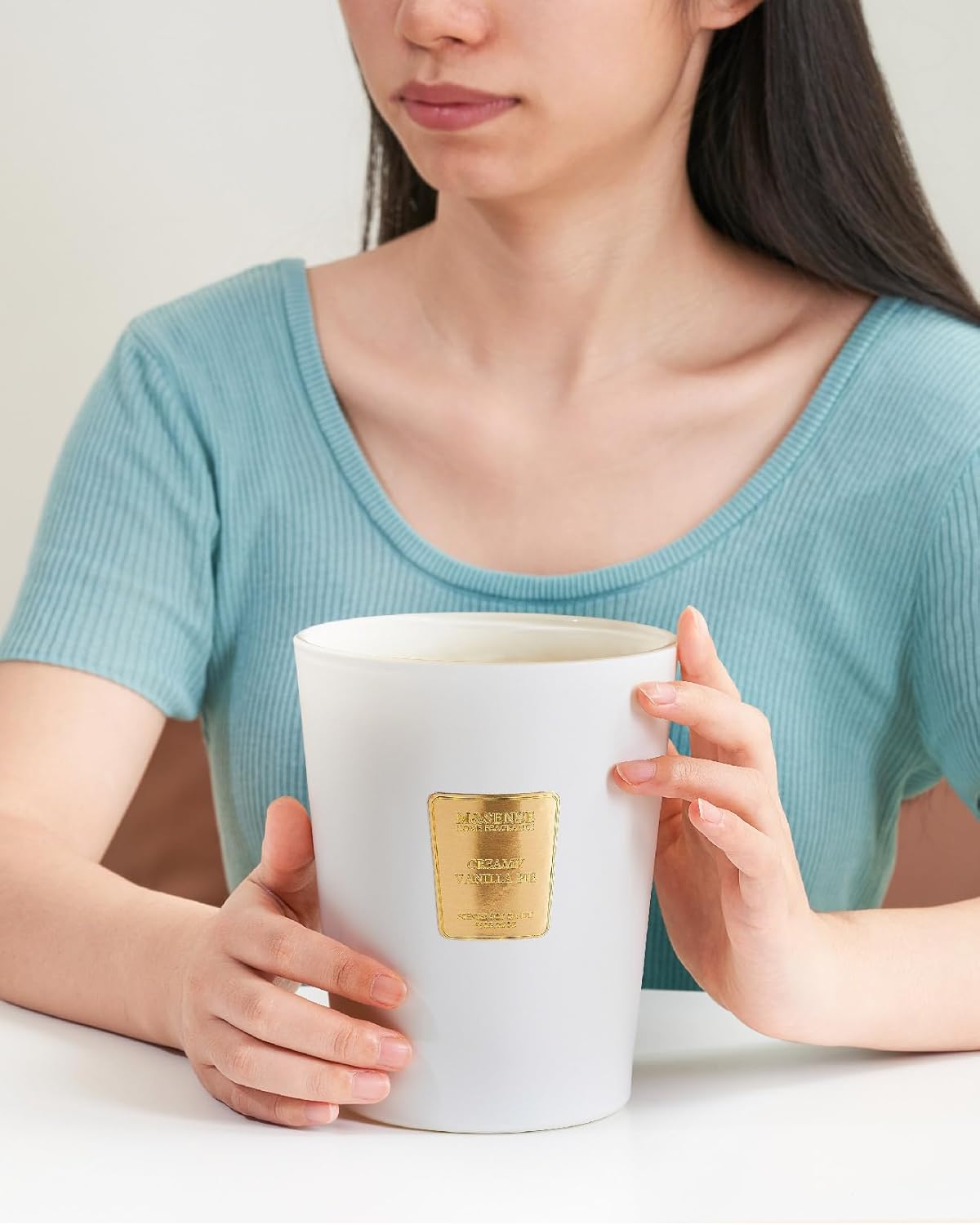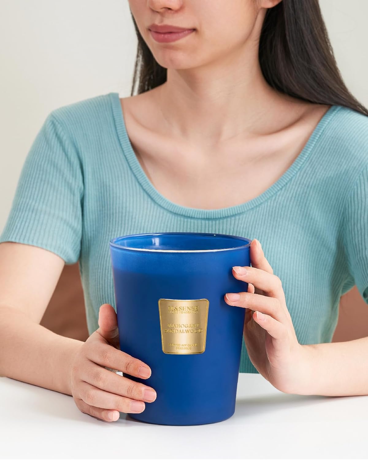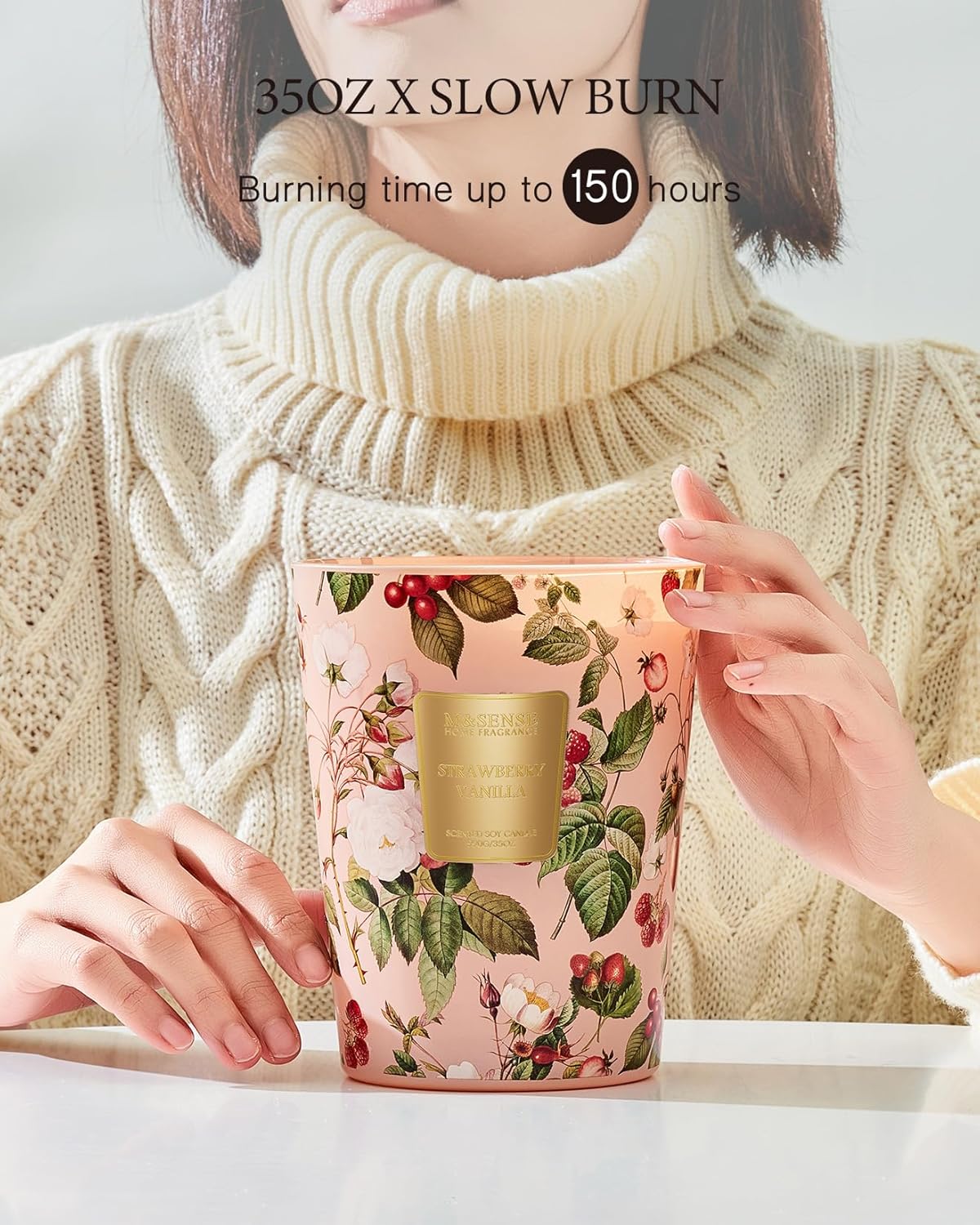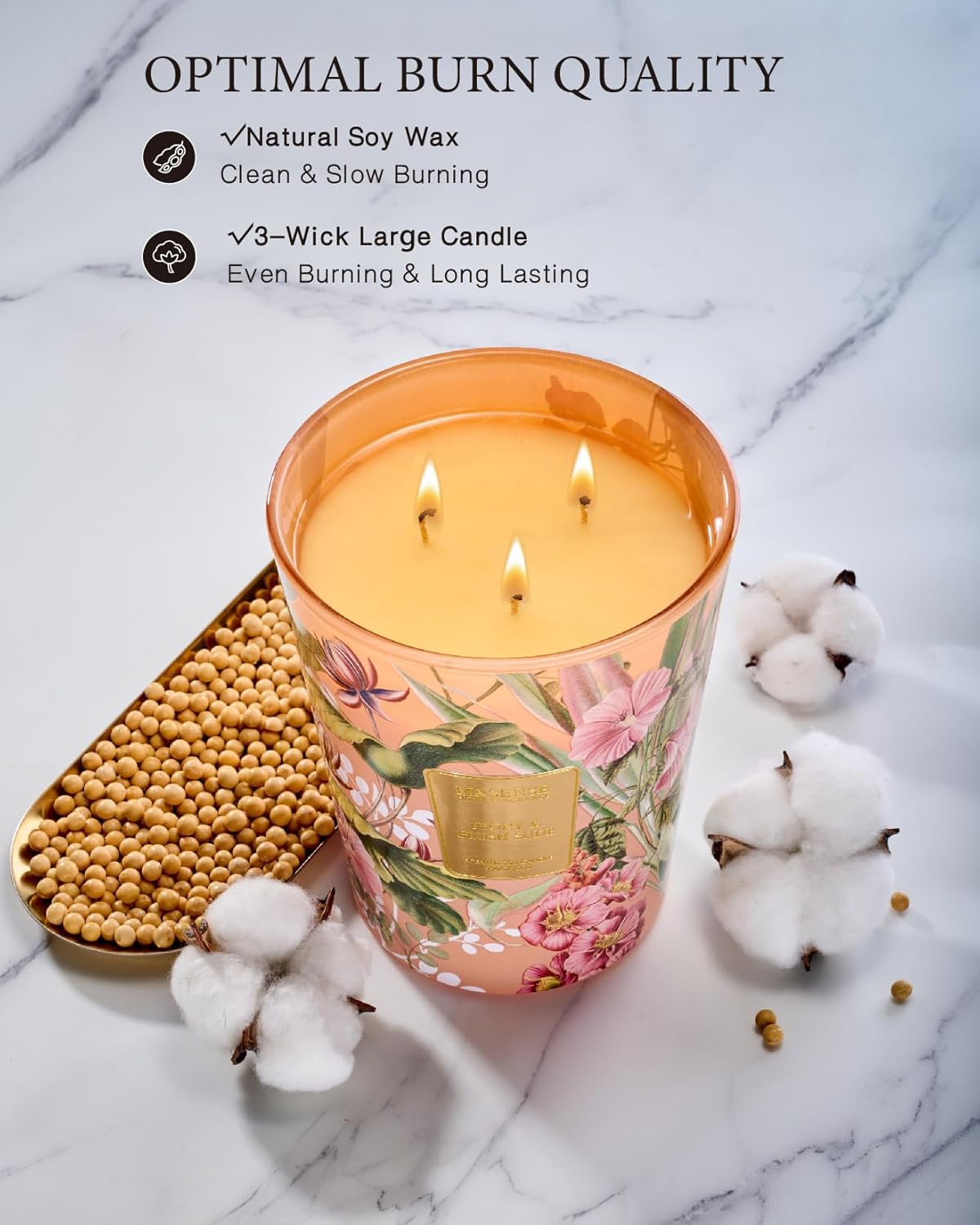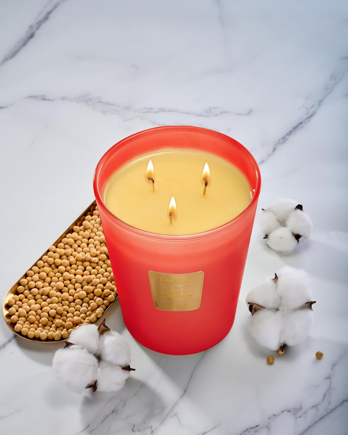 M&SENSE Large Candles Caramel Pumpkin Latte Scented, 3 Wick Natural Soy Candles for Home Scented, 150H Long Lasting Slow Burn Jar Candle 35oz, No Toxic Aromatherapy Candle for Stress Relief