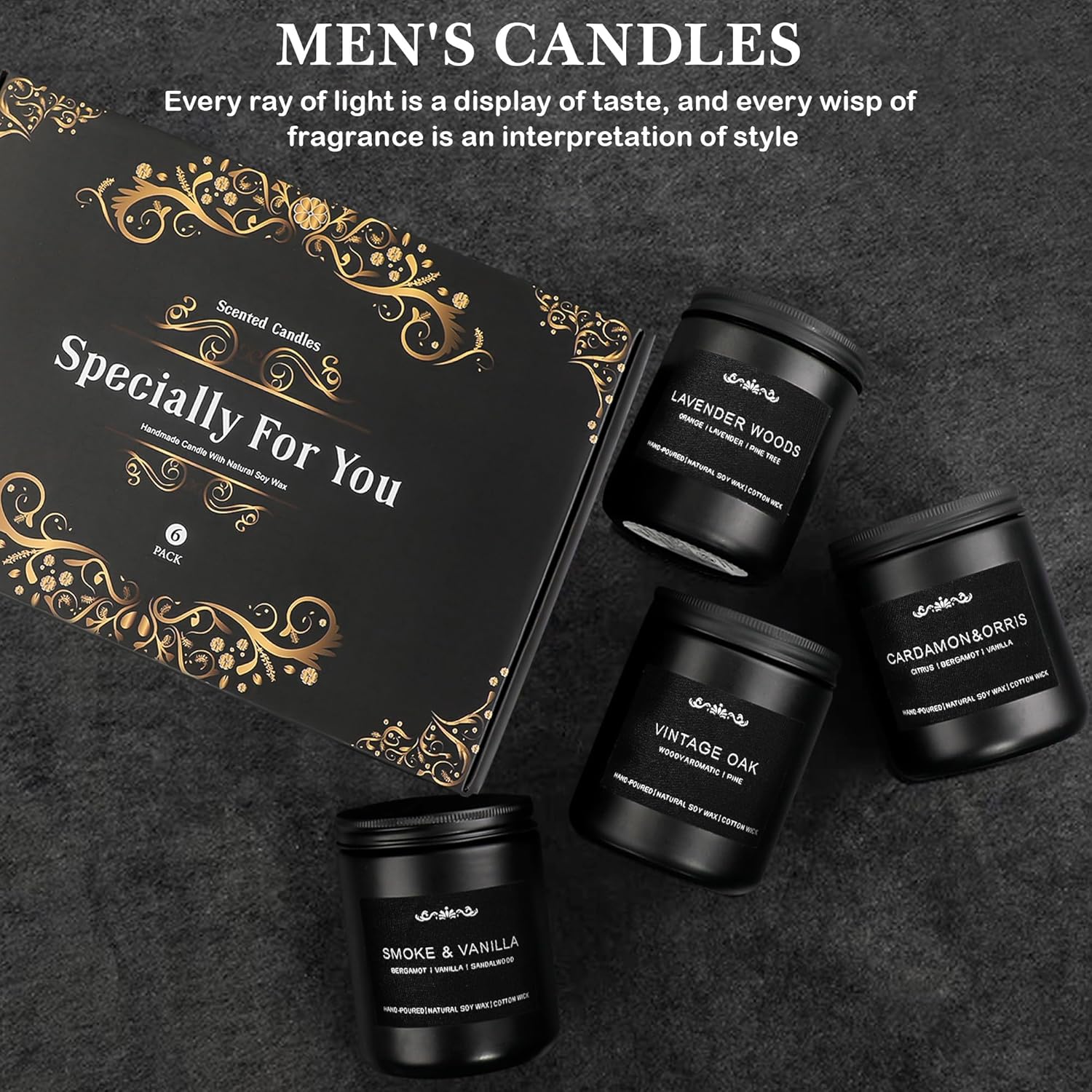 Scented Candles for Men, 6-Pack Candles for Home Scented, 42oz, 300 Hours Burning Time Long-Lasting Aroma 鈥?The Masculine Men Candle, Perfect for Boyfriend, Him, Father Aromatherapy Gift