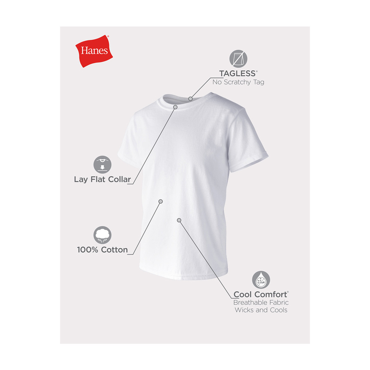 • Tagless® design eliminates itching from tags