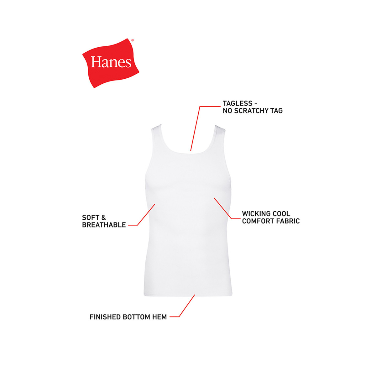 Hanes Men's Tagless Tanks, Ribbed White Tank Top Undershirts, Large, 3 pk