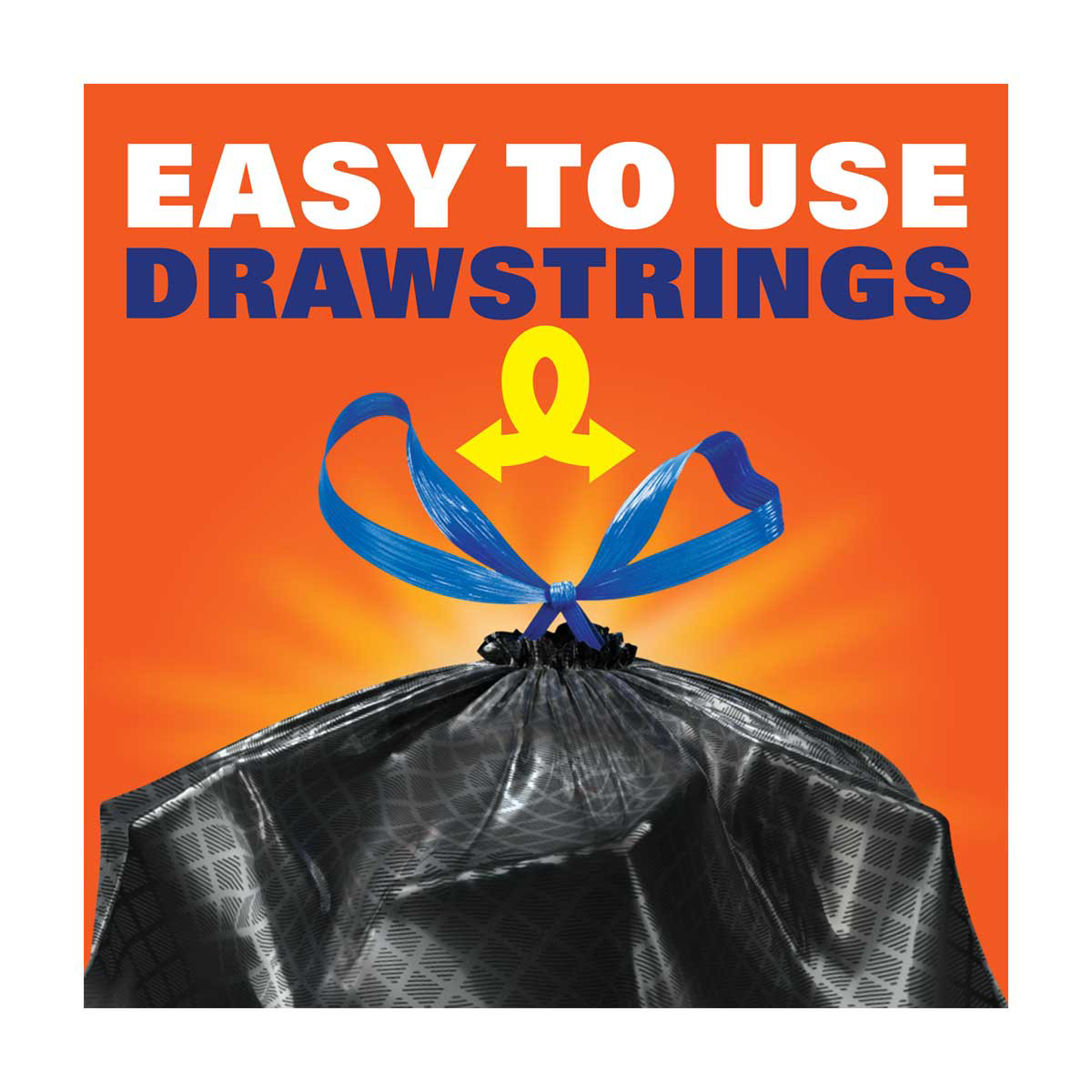 - Dependable Drawstring Closure: The durable drawstring on these black garbage bags 30 gallon makes it easy to transport heavy loads, donations, seasonal items and more