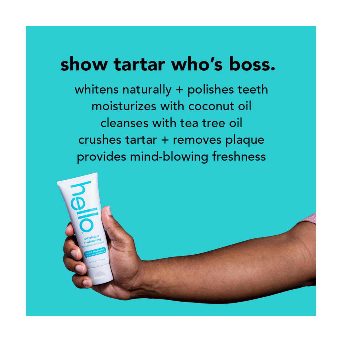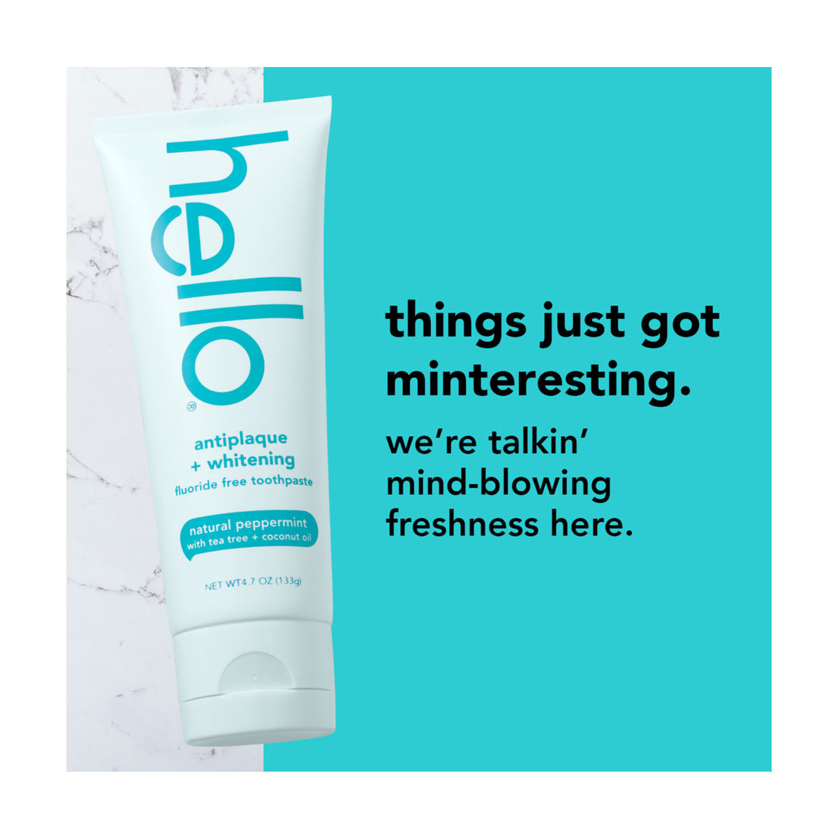 - WHAT I'M GETTING: Includes one (1) 4.7 oz tube of hello Antiplaque and Whitening Toothpaste, Fluoride Free Toothpaste