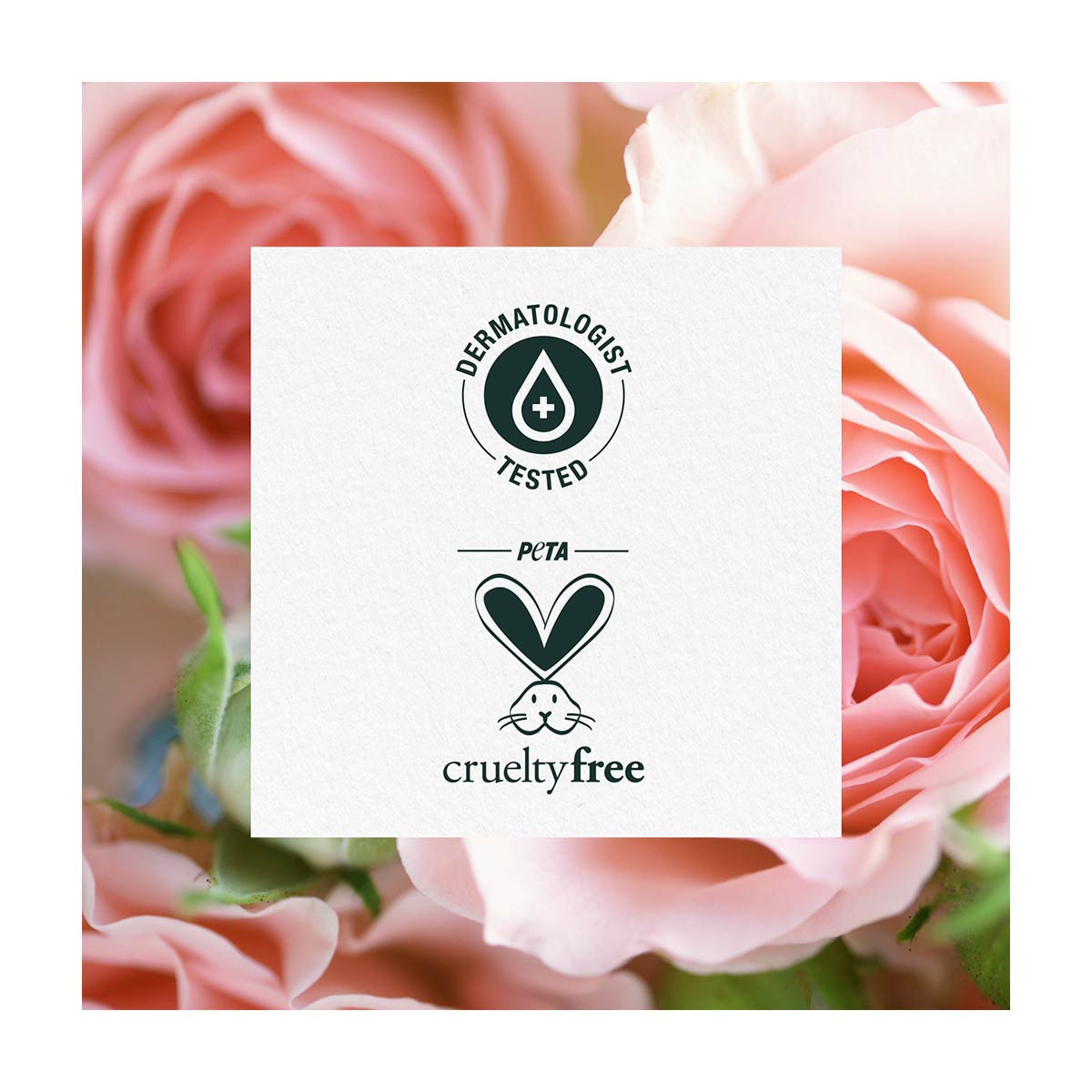 - Certified cruelty-free by PETA with a delightful floral fragrance featuring rose petal top notes for an aromatic experience every wash