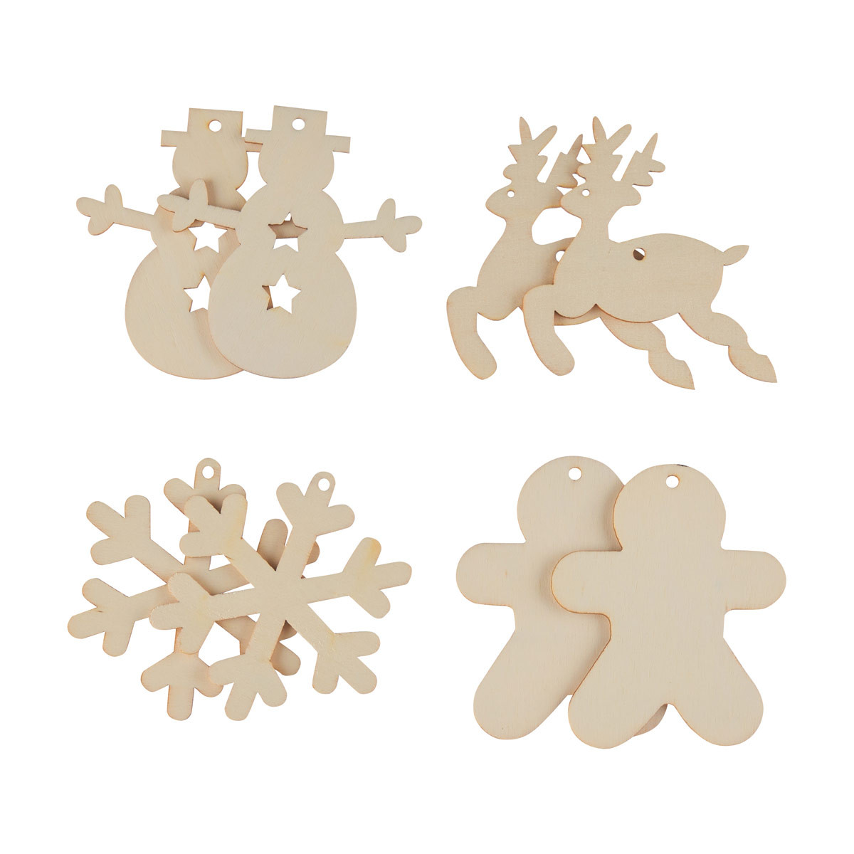 • Includes 8 wooden ornaments with assorted Christmas designs