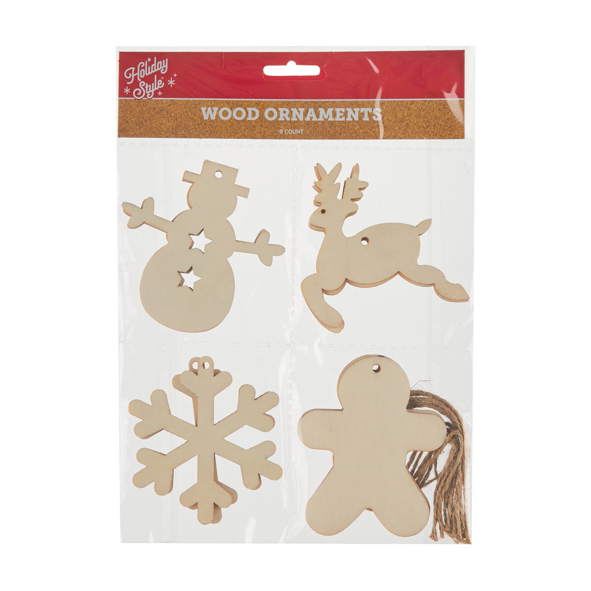 Holiday Style Christmas Wood Ornaments, 8 ct, Assorted