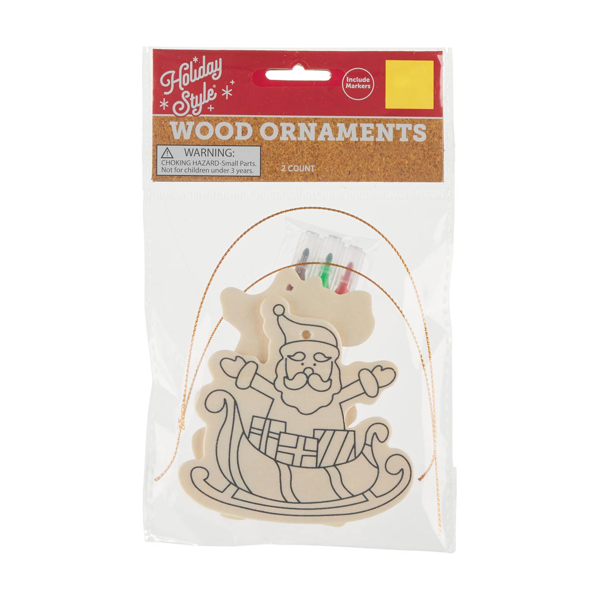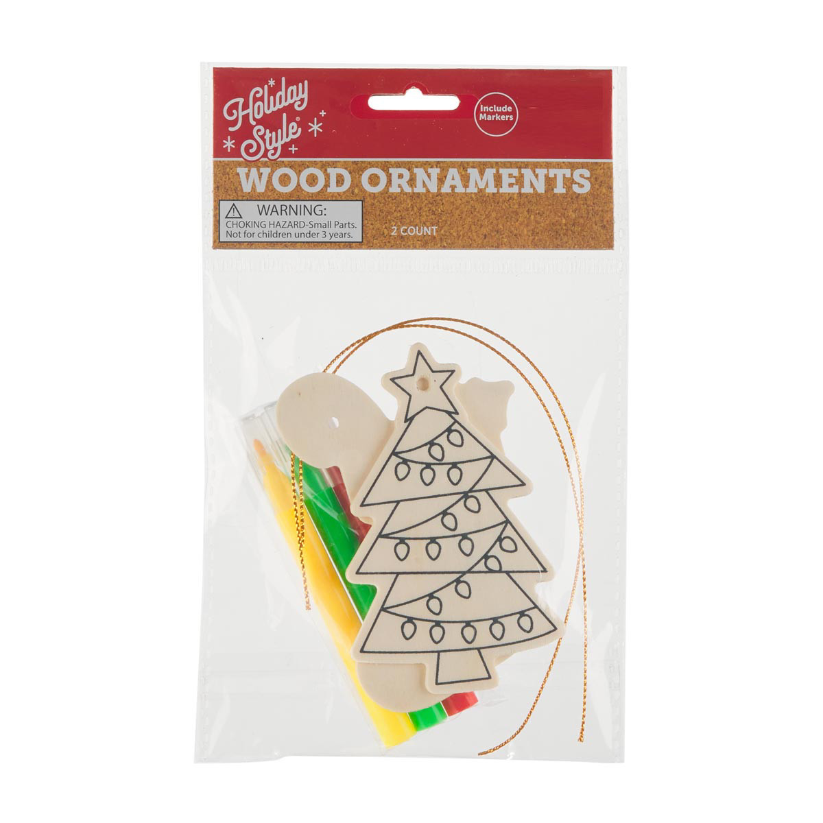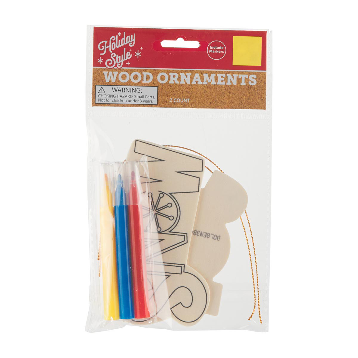 Holiday Style Christmas Wood Ornaments with Markers, 2 ct, Assorted