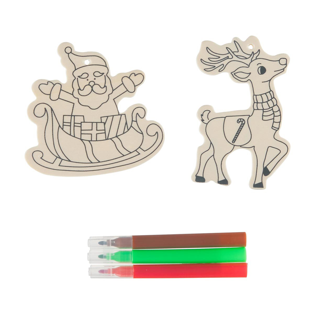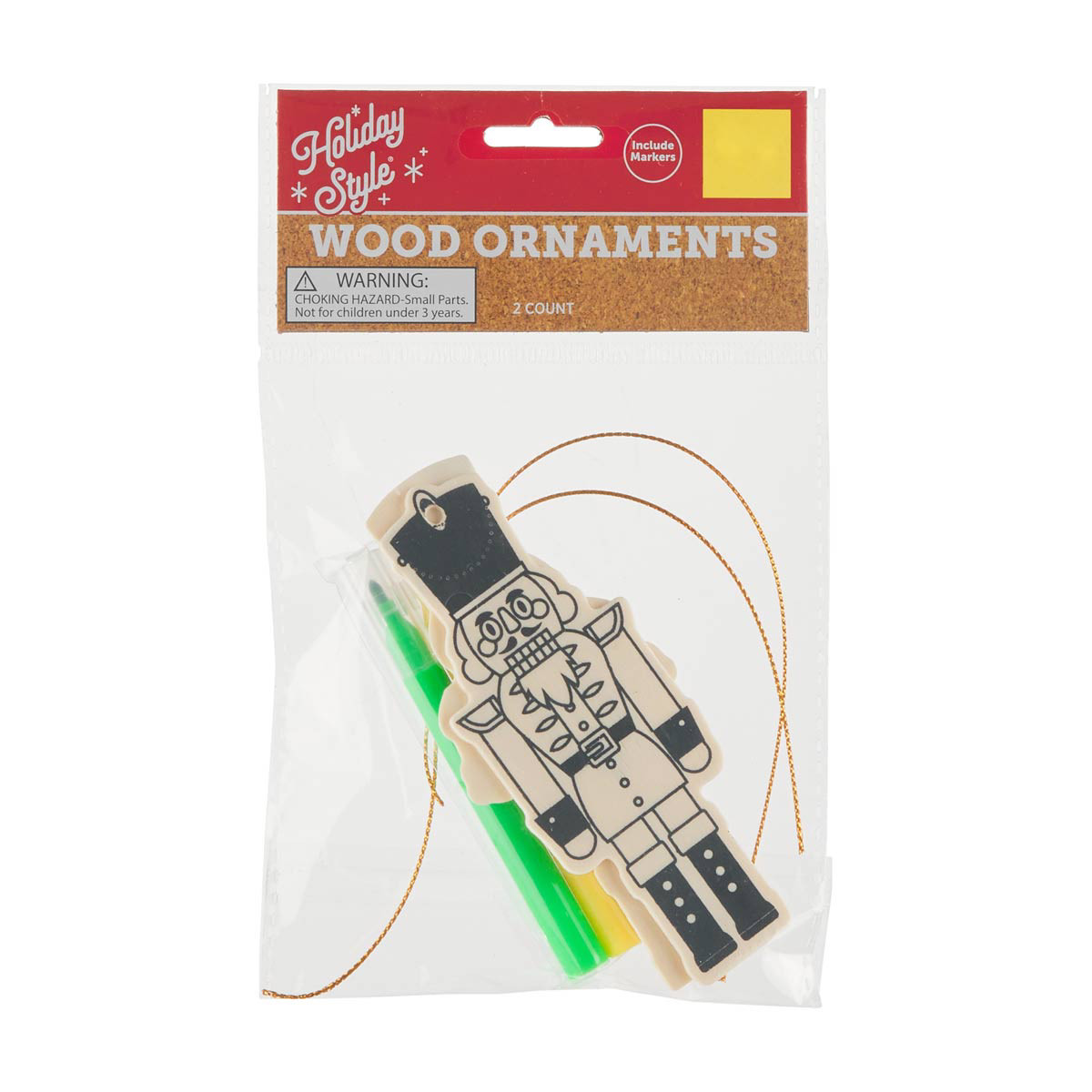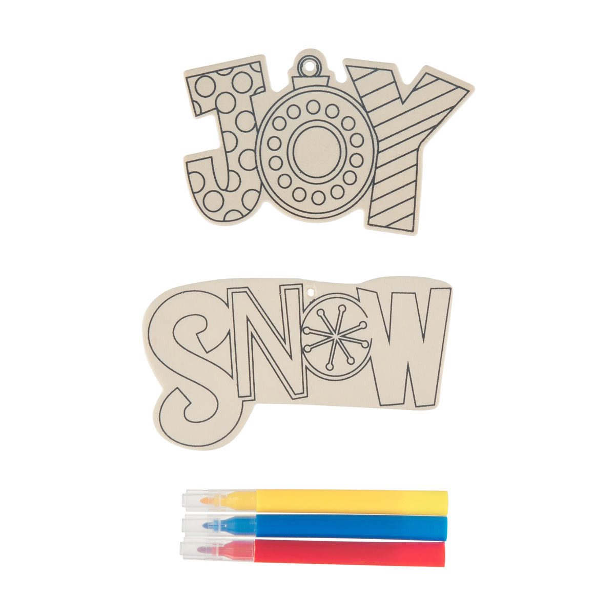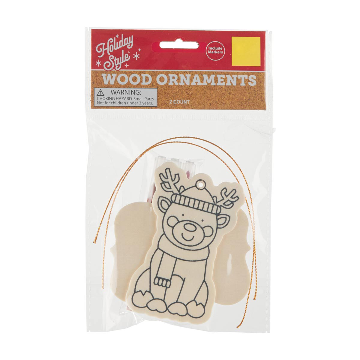 Holiday Style Christmas Wood Ornaments with Markers, 2 ct, Assorted
