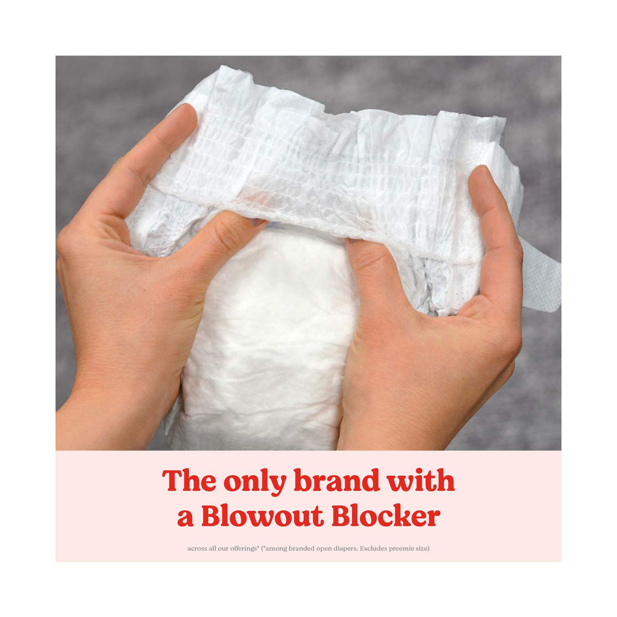 - Up to Zero Leaks, Even from Blowouts: Our baby diapers have a curved and stretchy fit and are designed to help eliminate gaps at the legs and waist