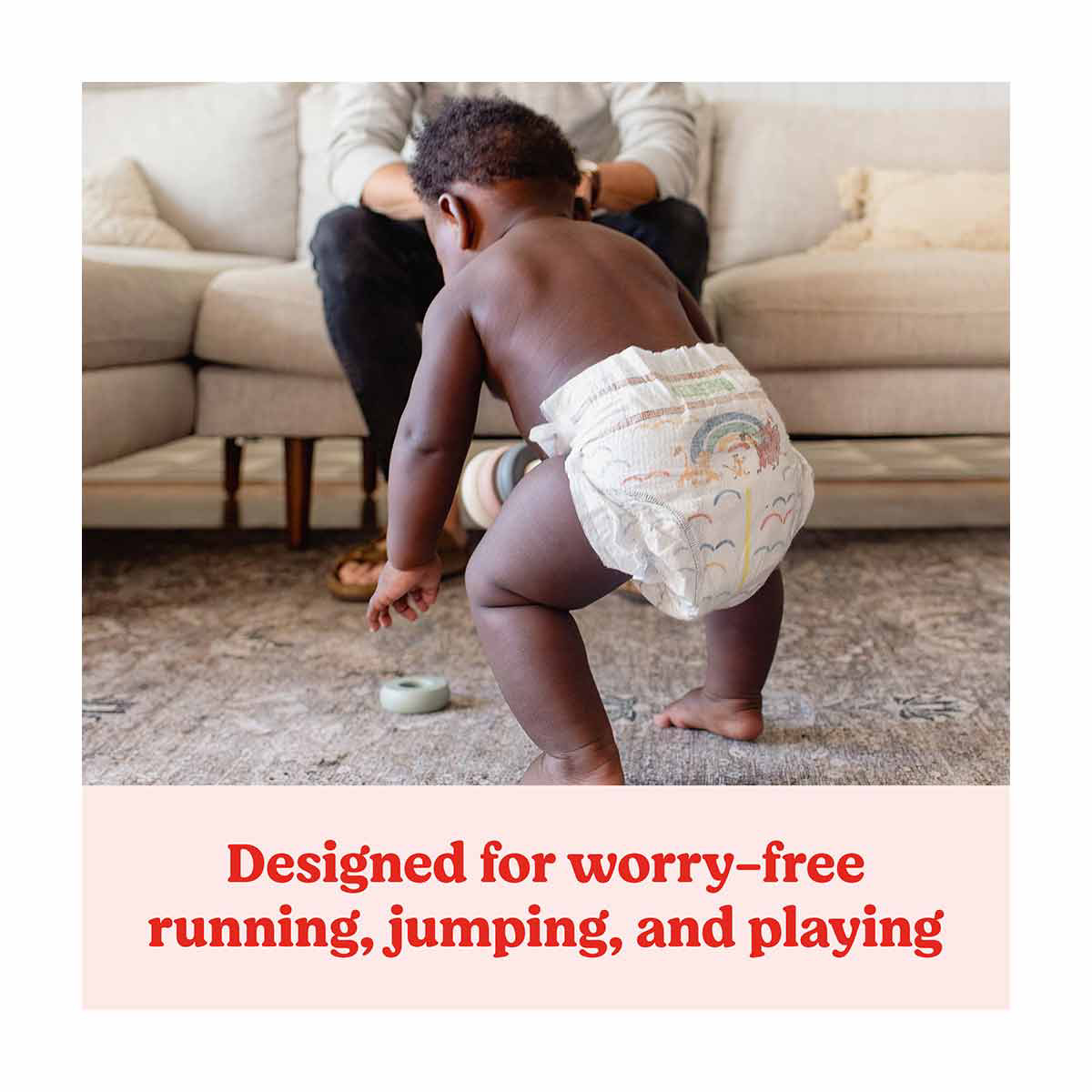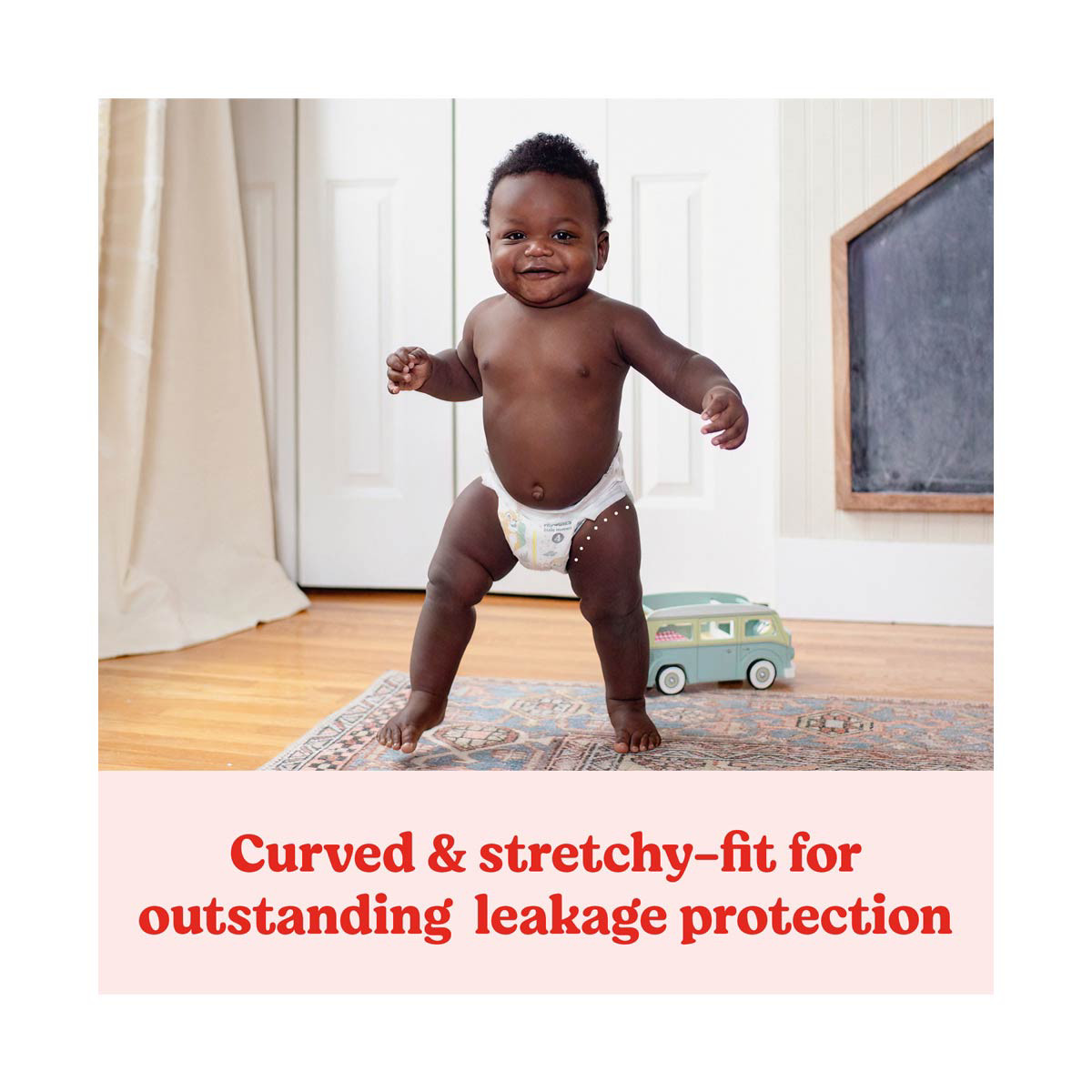 - Fast-Absorbing Dry Touch Liner helps the diaper lock away 99% of wetness to help keep skin dry. Features Disney designs as cute as your baby; packaging may vary