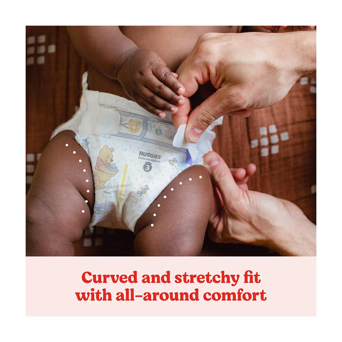 - Gentle Skin Protection: These Huggies diapers offer a curved and stretchy fit with all-around comfort for a gentle tummy fit