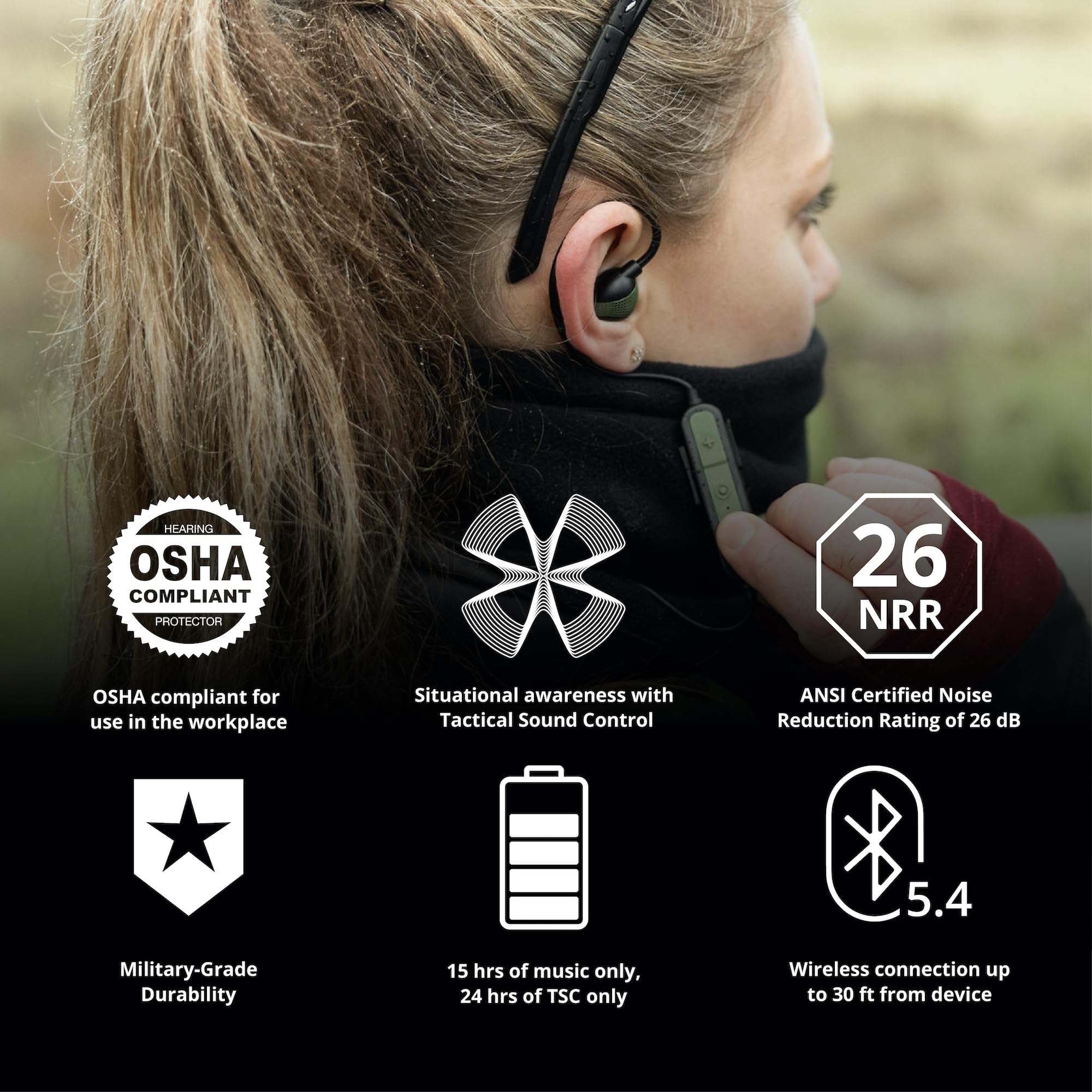 - Improved battery life offers 15+ hours of continuous audio streaming or up to 24 hours of Tactical Sound Control only. Short-charging capability enables an additional 2 hours of use on just a 15-minute charge. USB-C rechargeable (cable included).