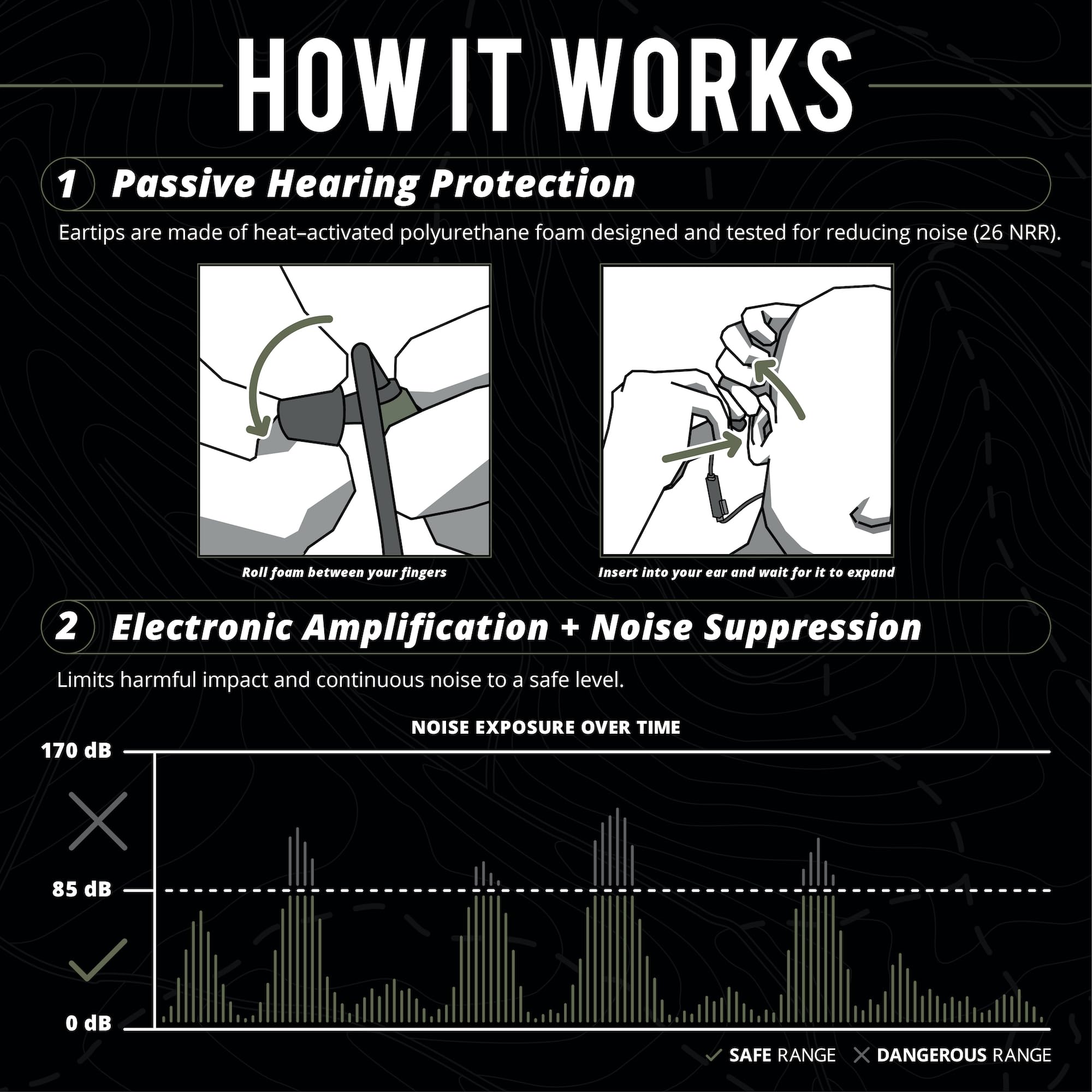- Tactical Sound Control gives you clear external audio transparency, up to 8x amplification to stay alert in your surroundings, and an ultrafast <2 millisecond response time for safe and effective suppression of gunshot noise without sacrificing your awareness.