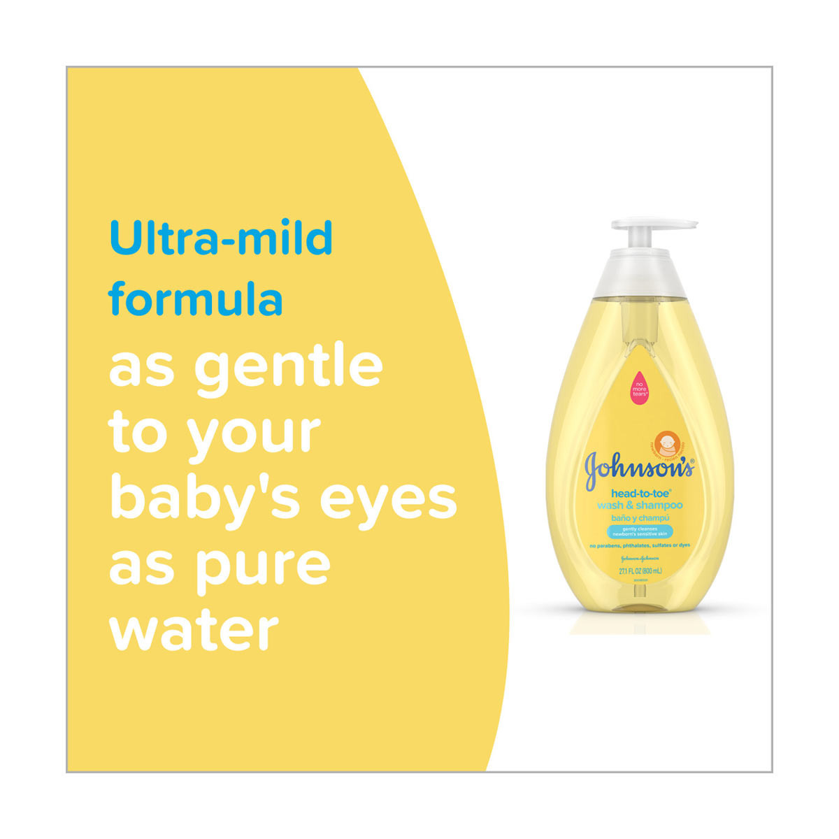 - Gently cleanses your newborn baby's sensitive skin and hair with an ultra-mild formula