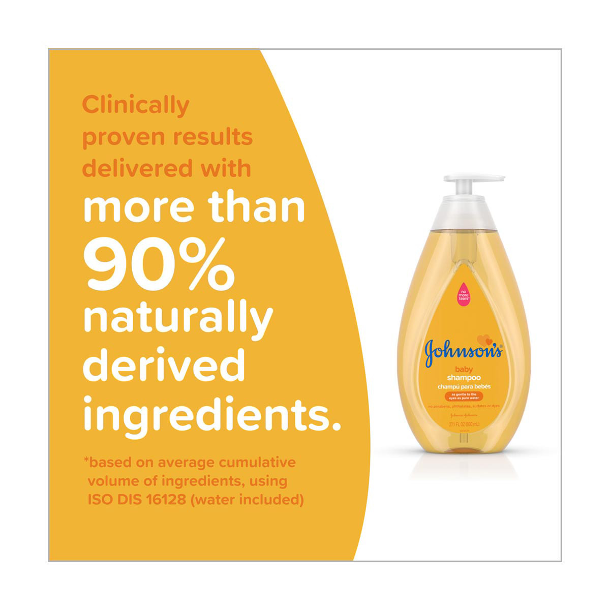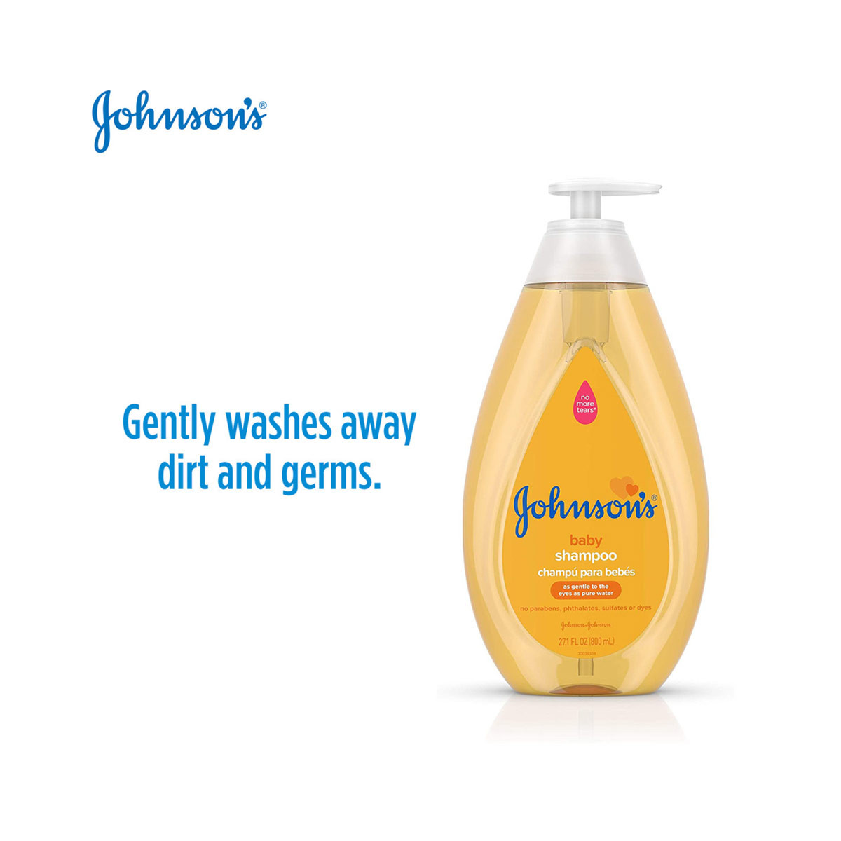 - Johnson's Baby Shampoo with a mild Tear-Free formula to gently wash away dirt & germs