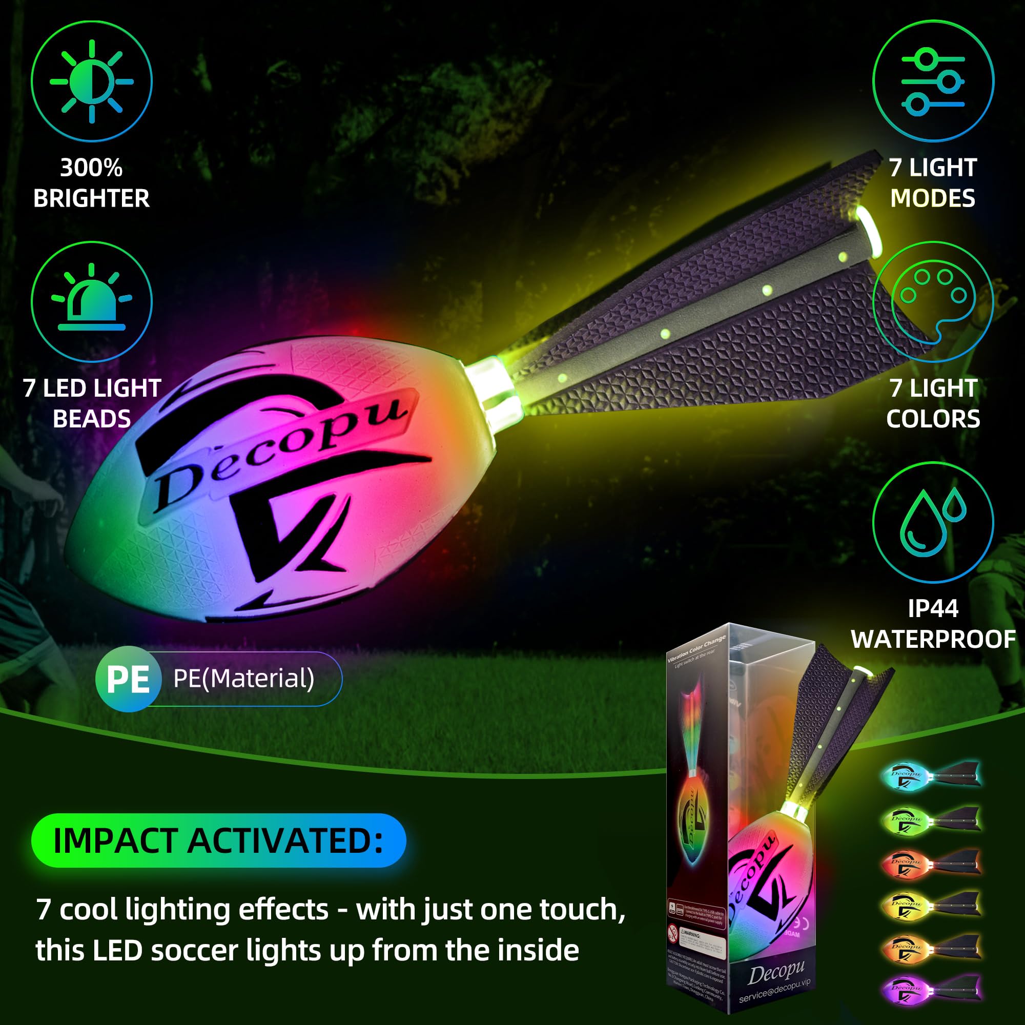- Independent Switch Design:7 cool lighting effects - with just one touch, this LED soccer lights up from the inside; switch colors with one simple touch. Color changes even in the air. Adding unique colors to your game makes you stand out from the crowd and impress your friends. Perfect sense of gaming experience