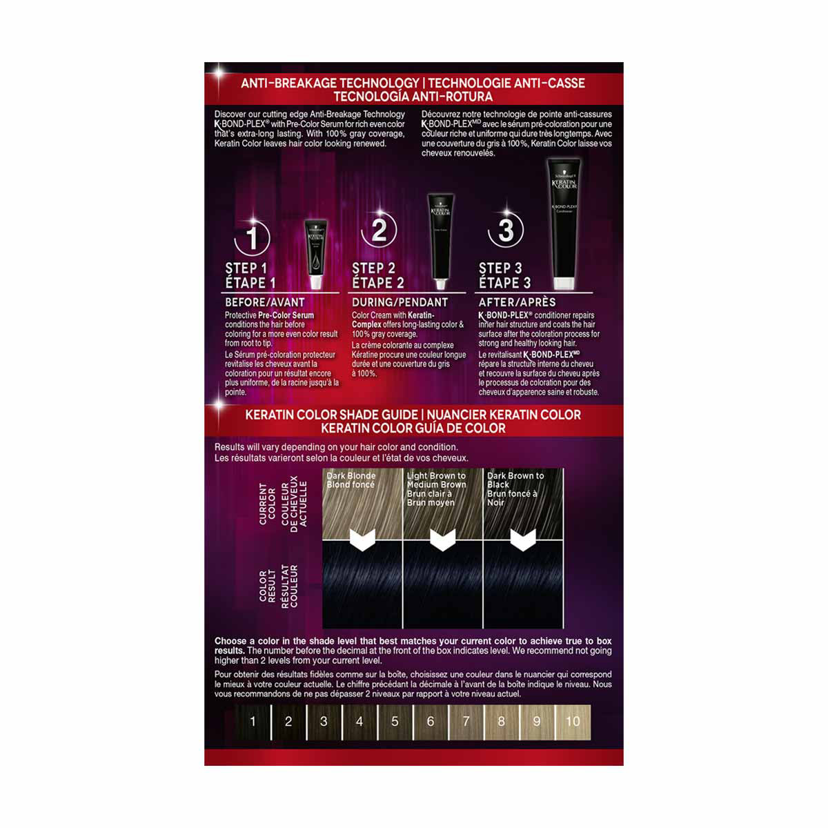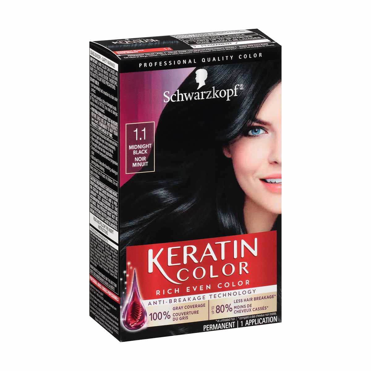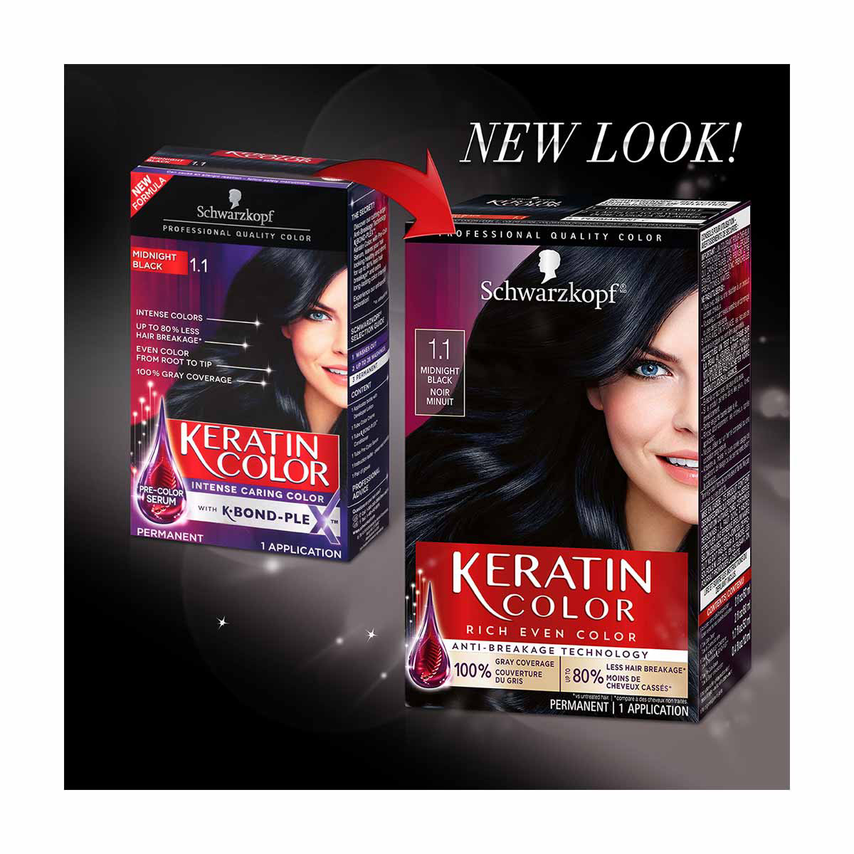- This kit includes one application of Keratin Color Permanent Hair Color in 1.1 Midnight Black with a precision applicator allowing easy use