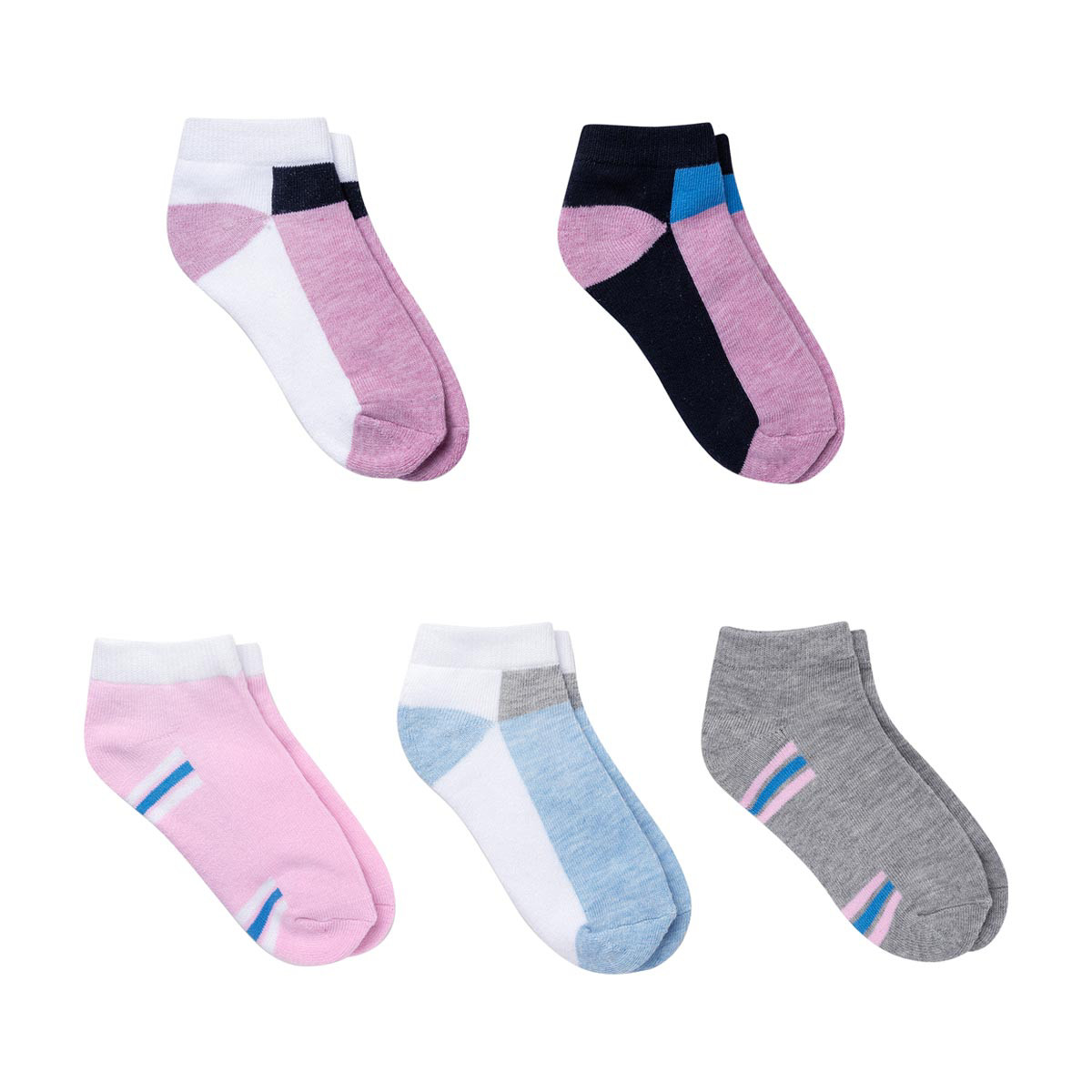 • Pack includes 5 pairs of kids' no-show athletic socks