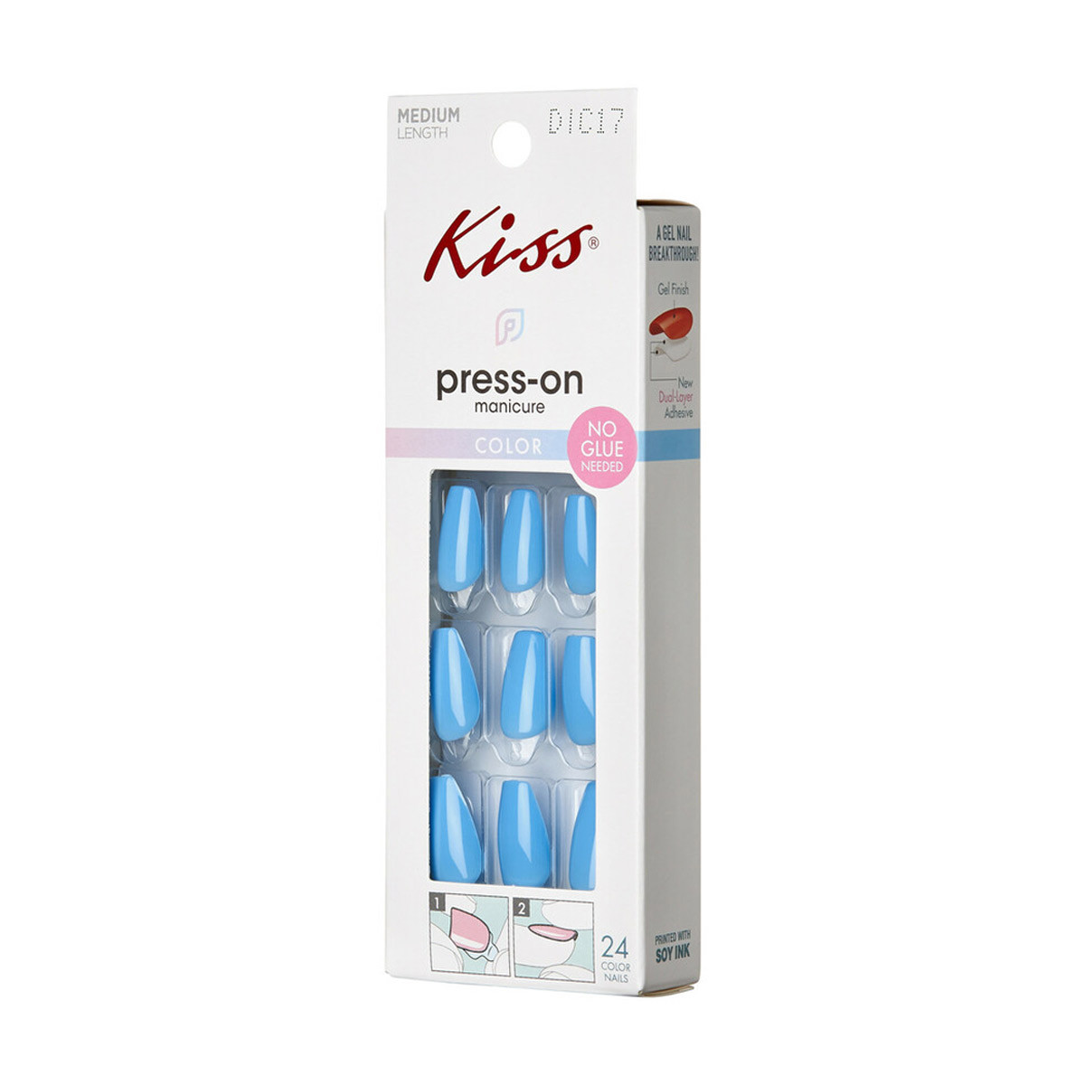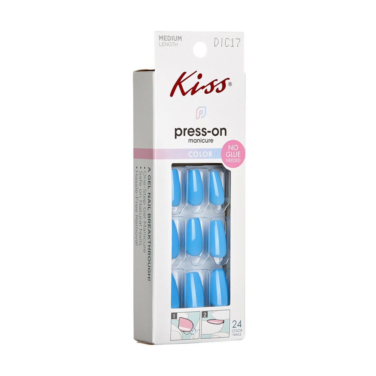 KISS Solid Color Medium Coffin Press-On Nails - Blue, 24 ct