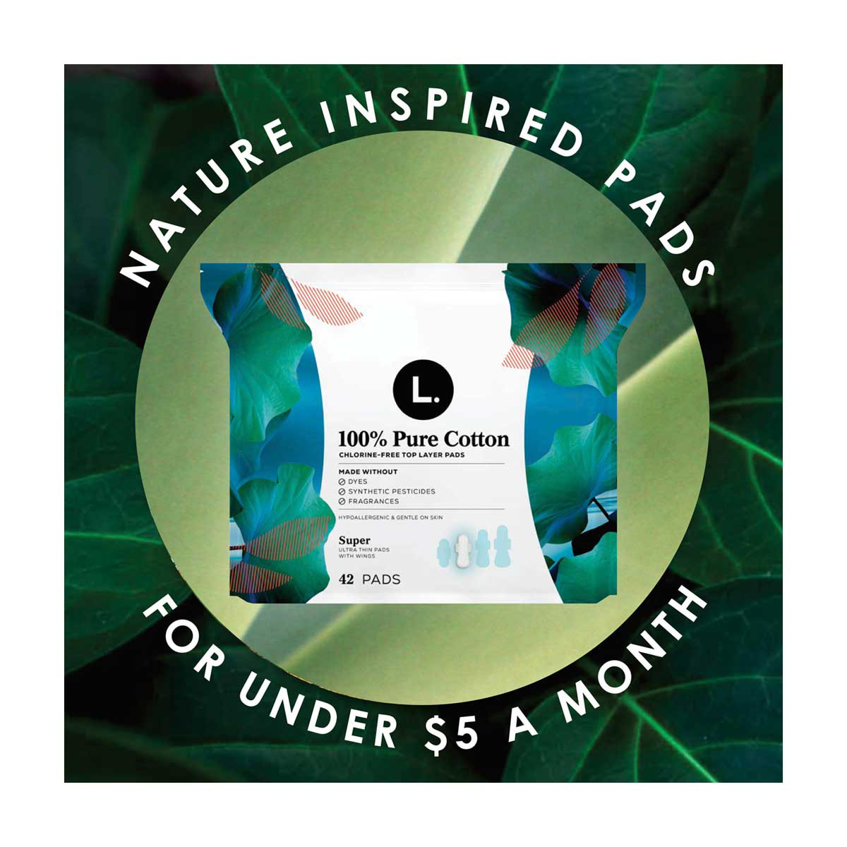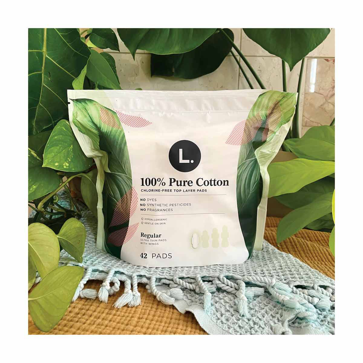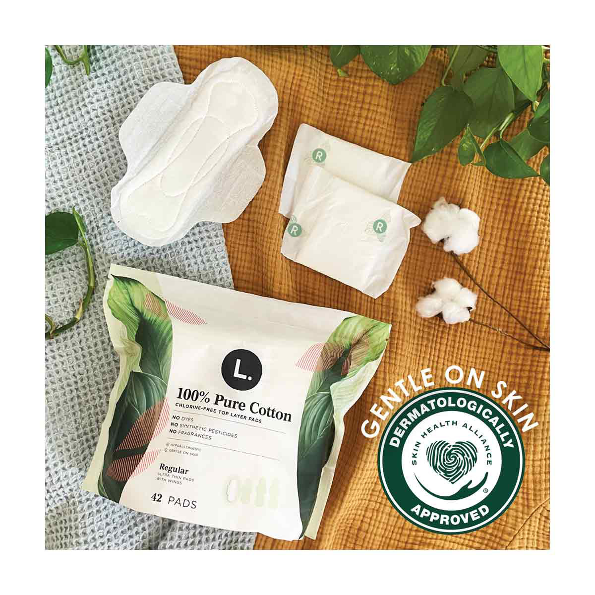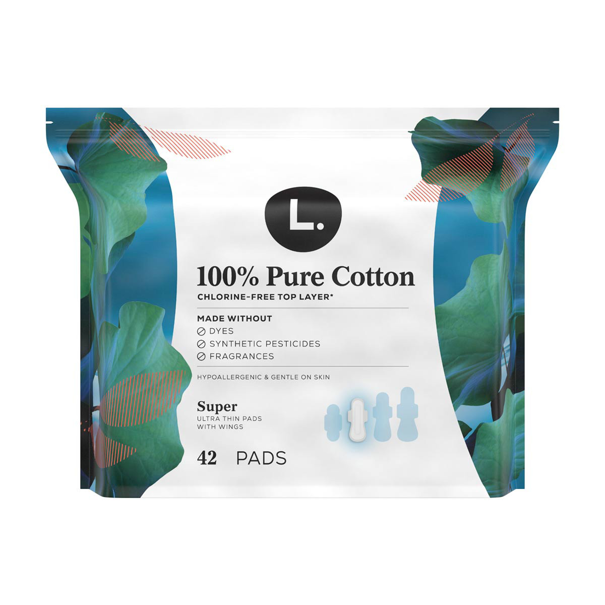 • L. Ultra Thin Pads for Women, Super Absorbency, 100% Pure Cotton Top Layer, Unscented Pads with Wings, 42 CT