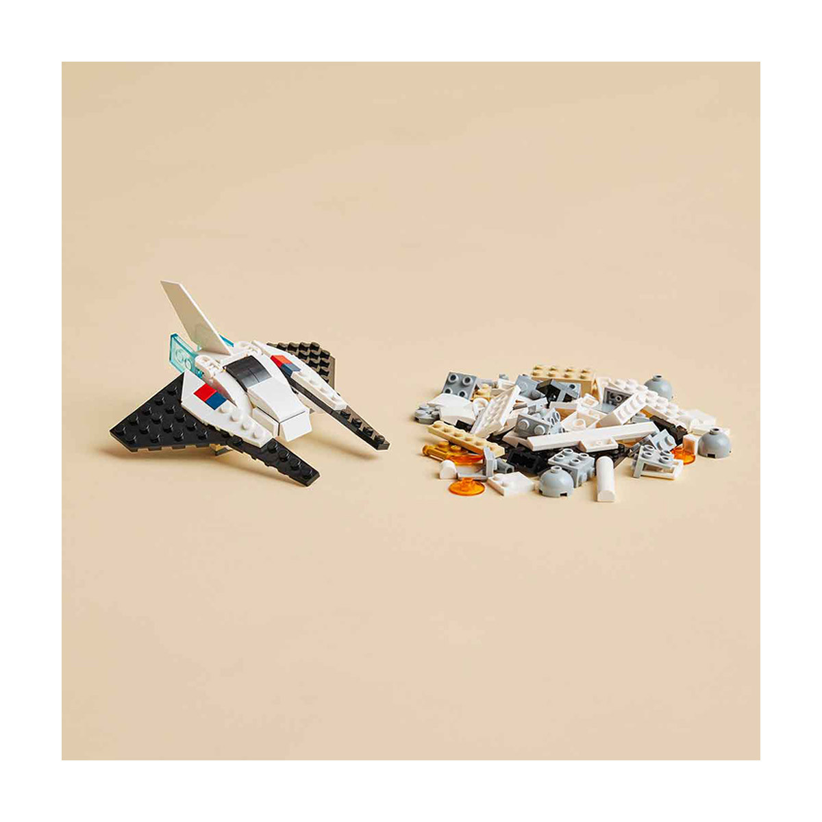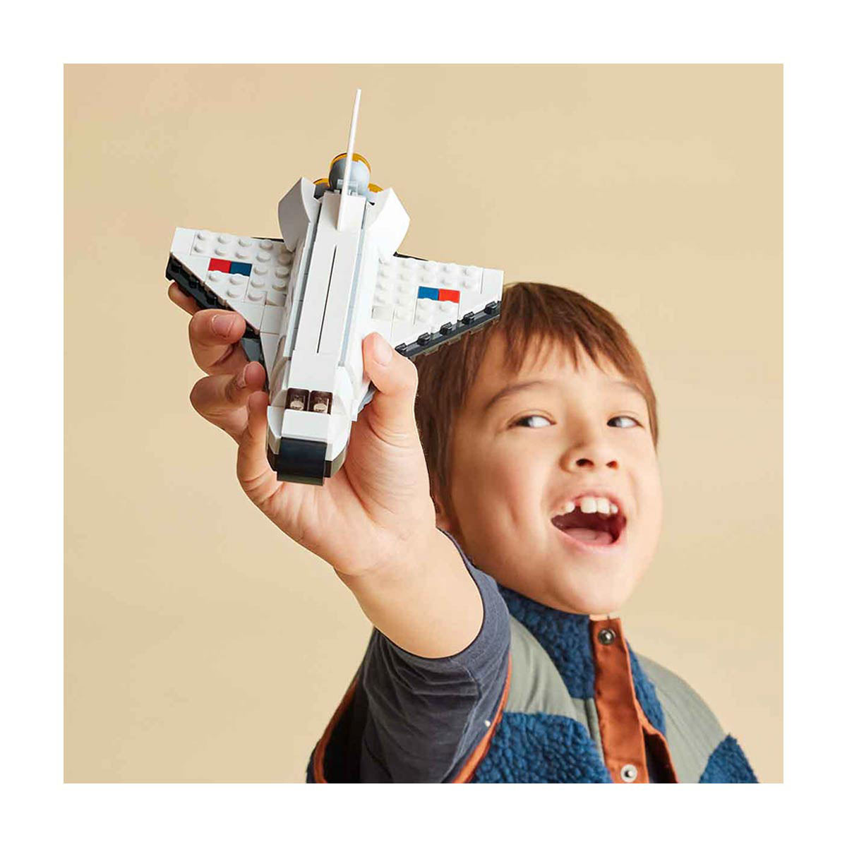 - Build one of three different space-themed models: a Space Shuttle, an astronaut with jetpack and flag, or a spaceship