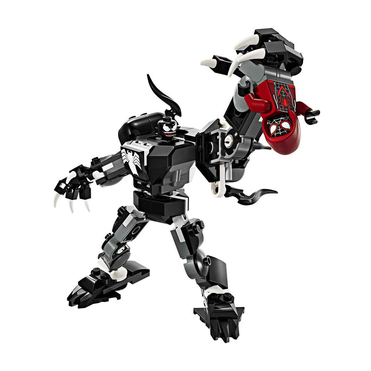 - Includes a buildable mech with jointed legs, arms, and fingers, plus Miles Morales and Venom LEGO® minifigures