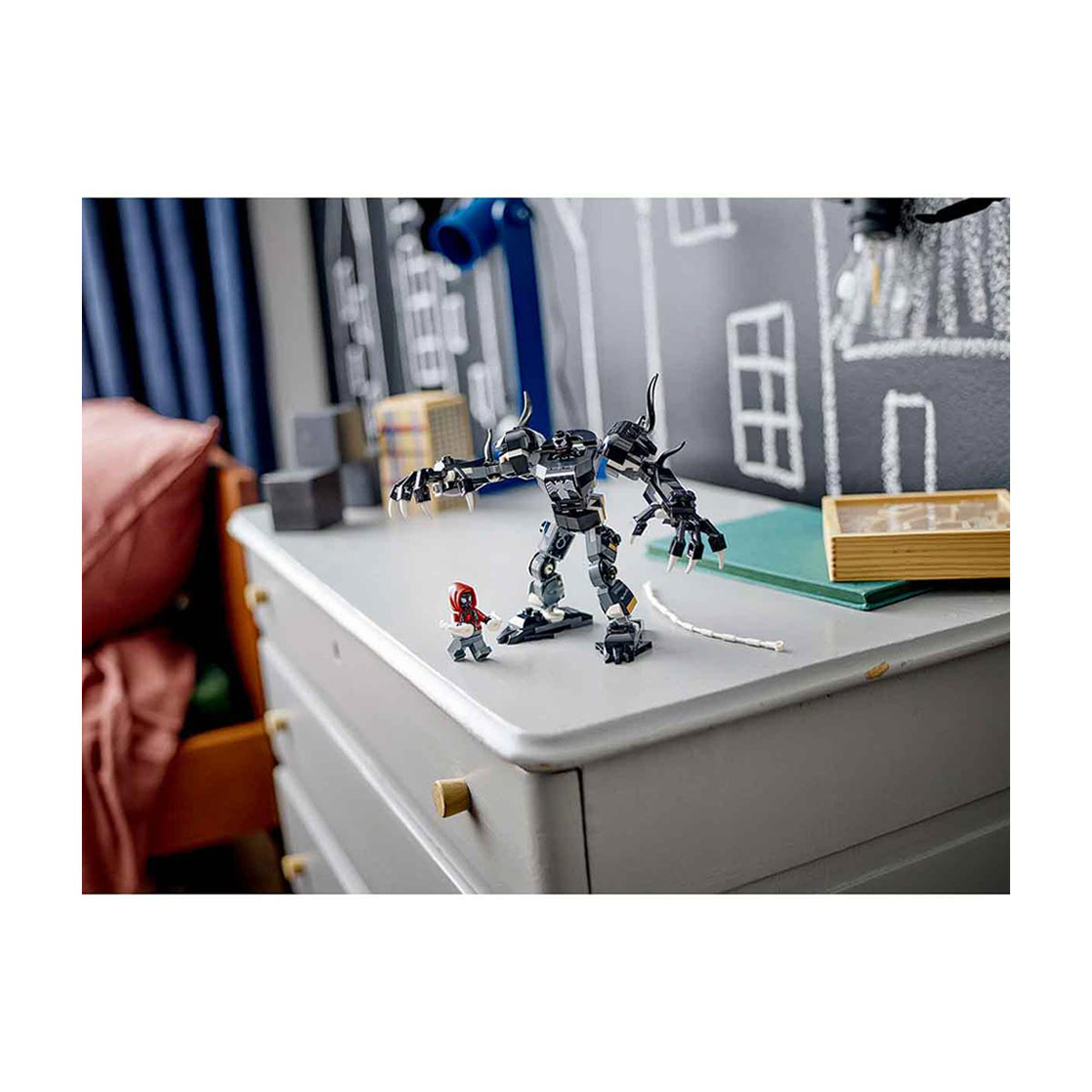 - The Venom LEGO® minifigure fits into the opening cockpit of the mech, whose movable limbs adjust for endless play-and-display possibilities
