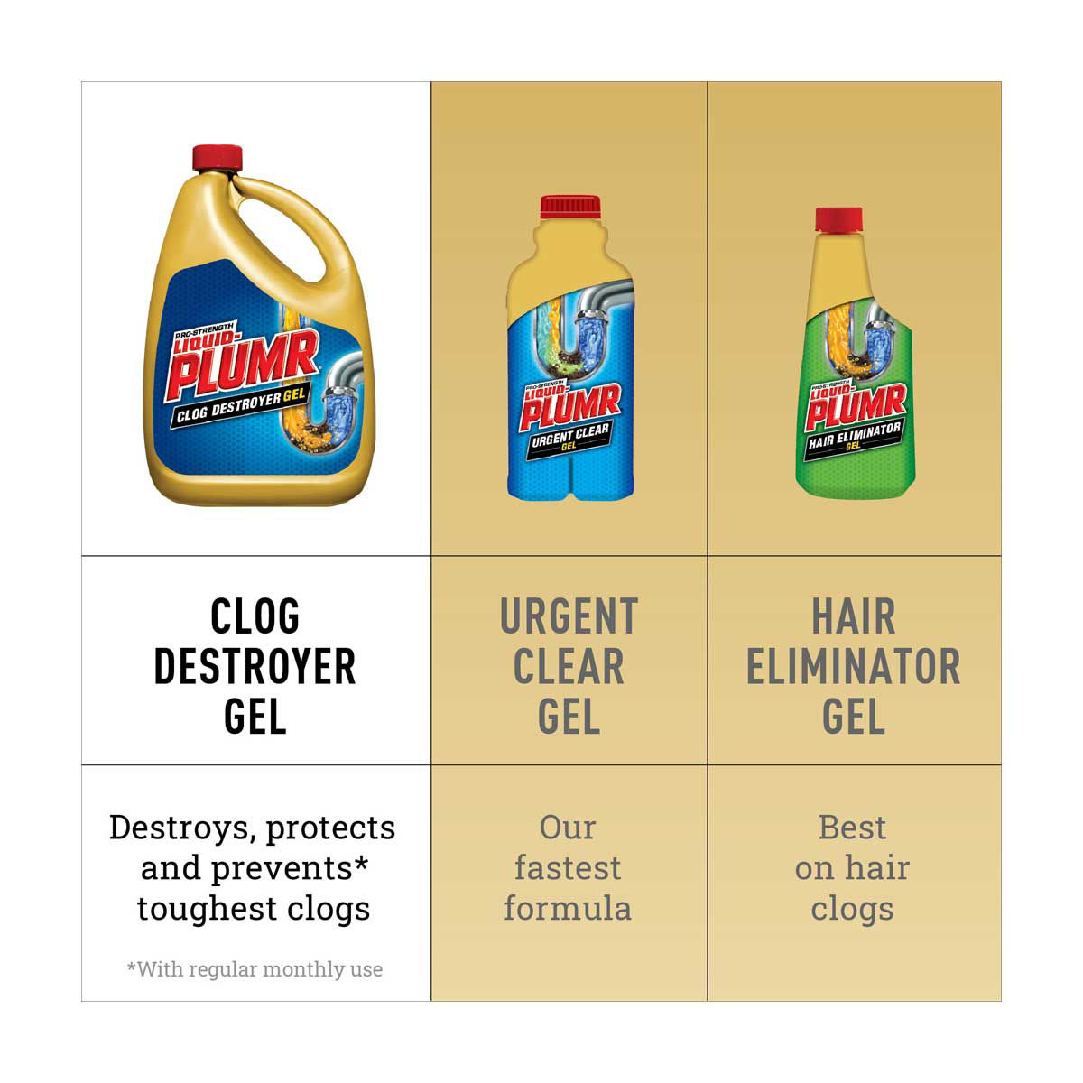 - DRAIN CLOG REMOVER: Liquid-Plumr Clog Destroyer Gel with PipeGuard uses 3-in-1 action to dissolve tough clogs, prevent new ones from forming, and remove unpleasant odors; Package may vary