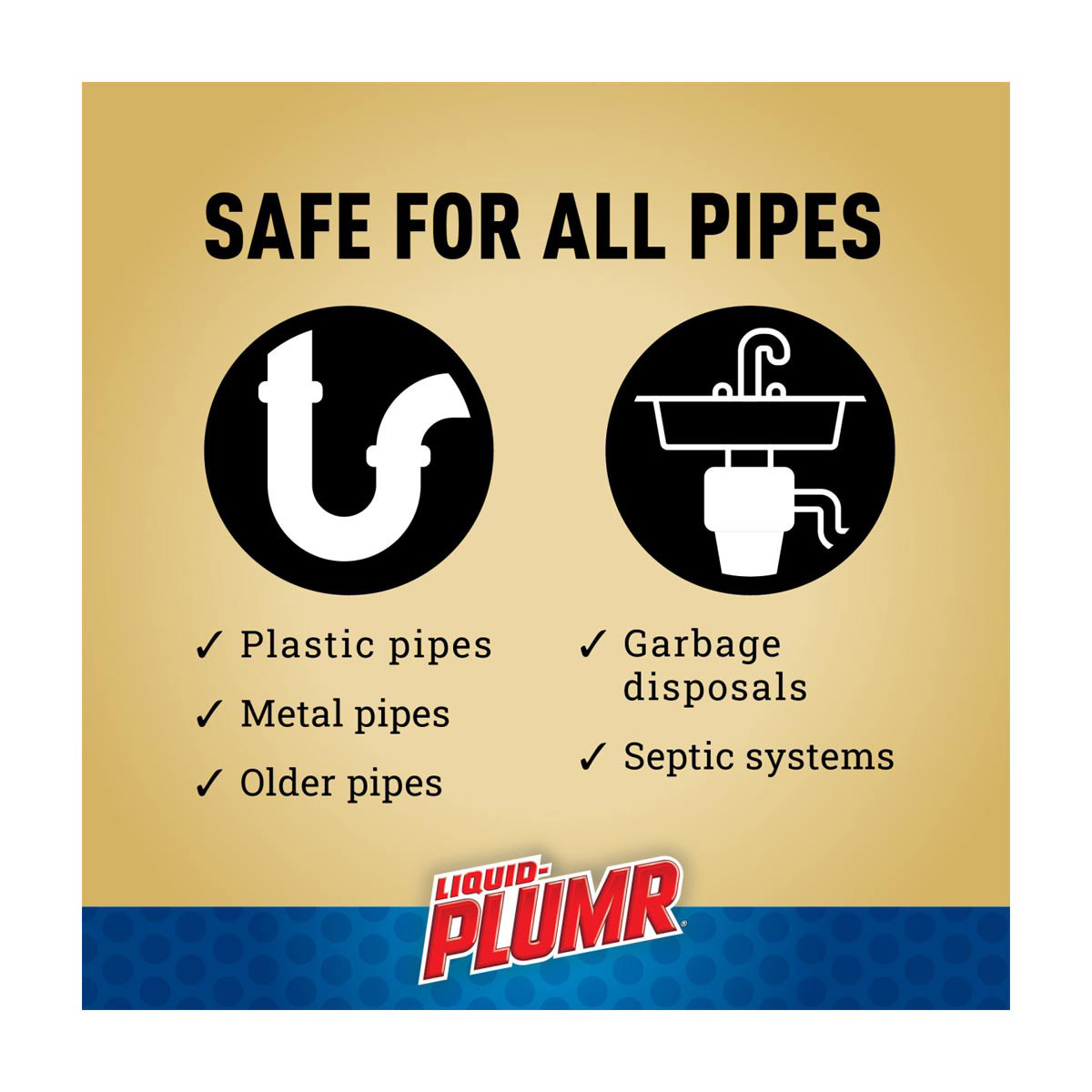 - SAFE ON ALL PIPES: Made with Pipeguard, this Liquid-Plumr drain cleaner protects pipes and is safe for septic systems, disposals and pipes, including PVC, plastic, copper and old drain pipes