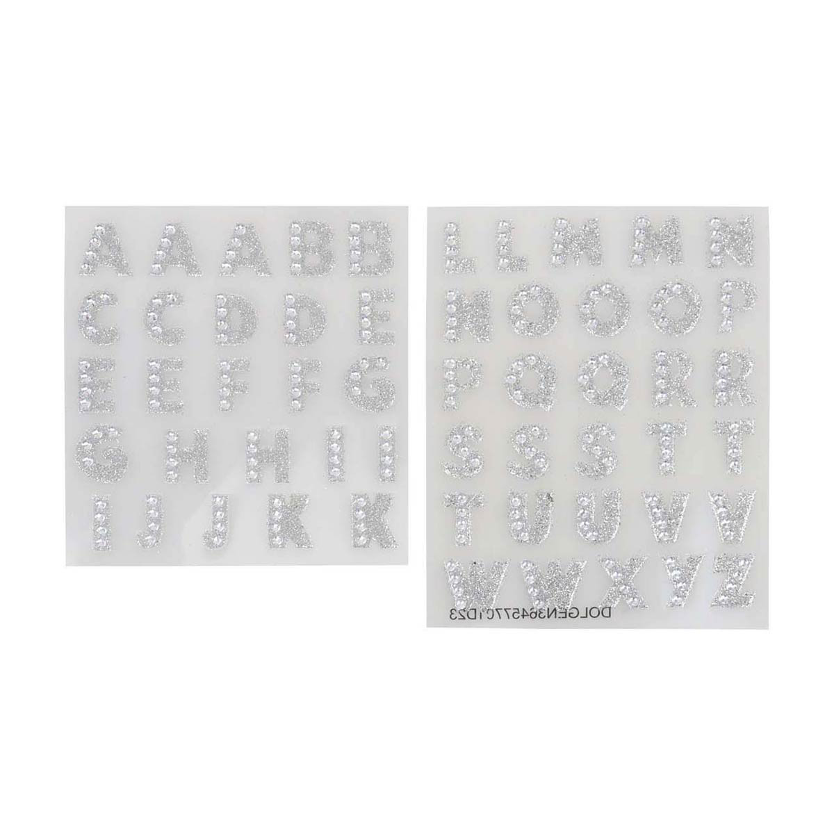 • Alphabet stickers accented with clear gemstones and silver glitter