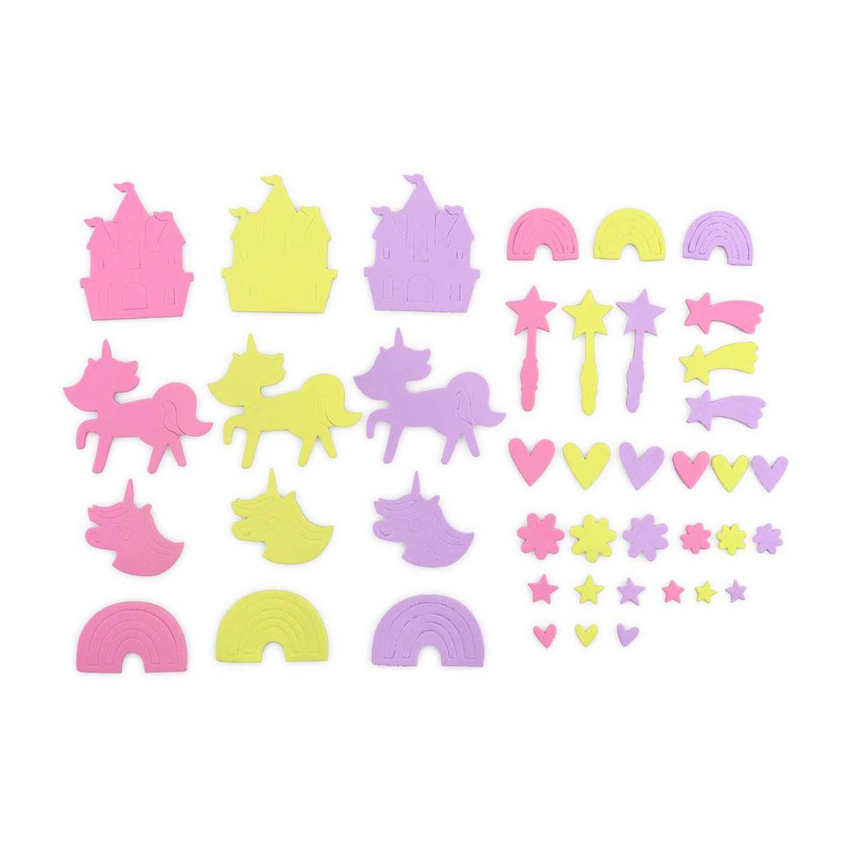 • Unicorns, castles, rainbows & stars in assorted bright colors