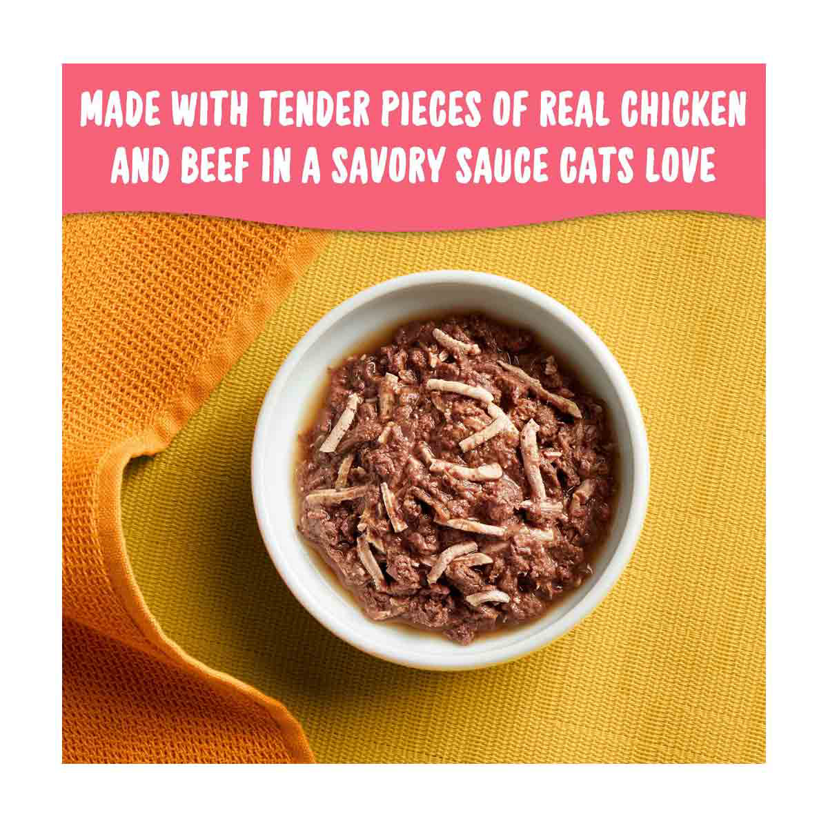 - Made with tender pieces of real chicken and beef in a savory sauce cats love