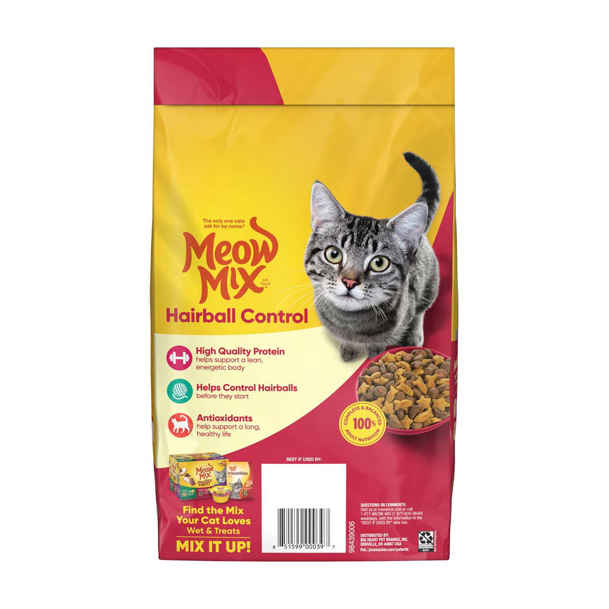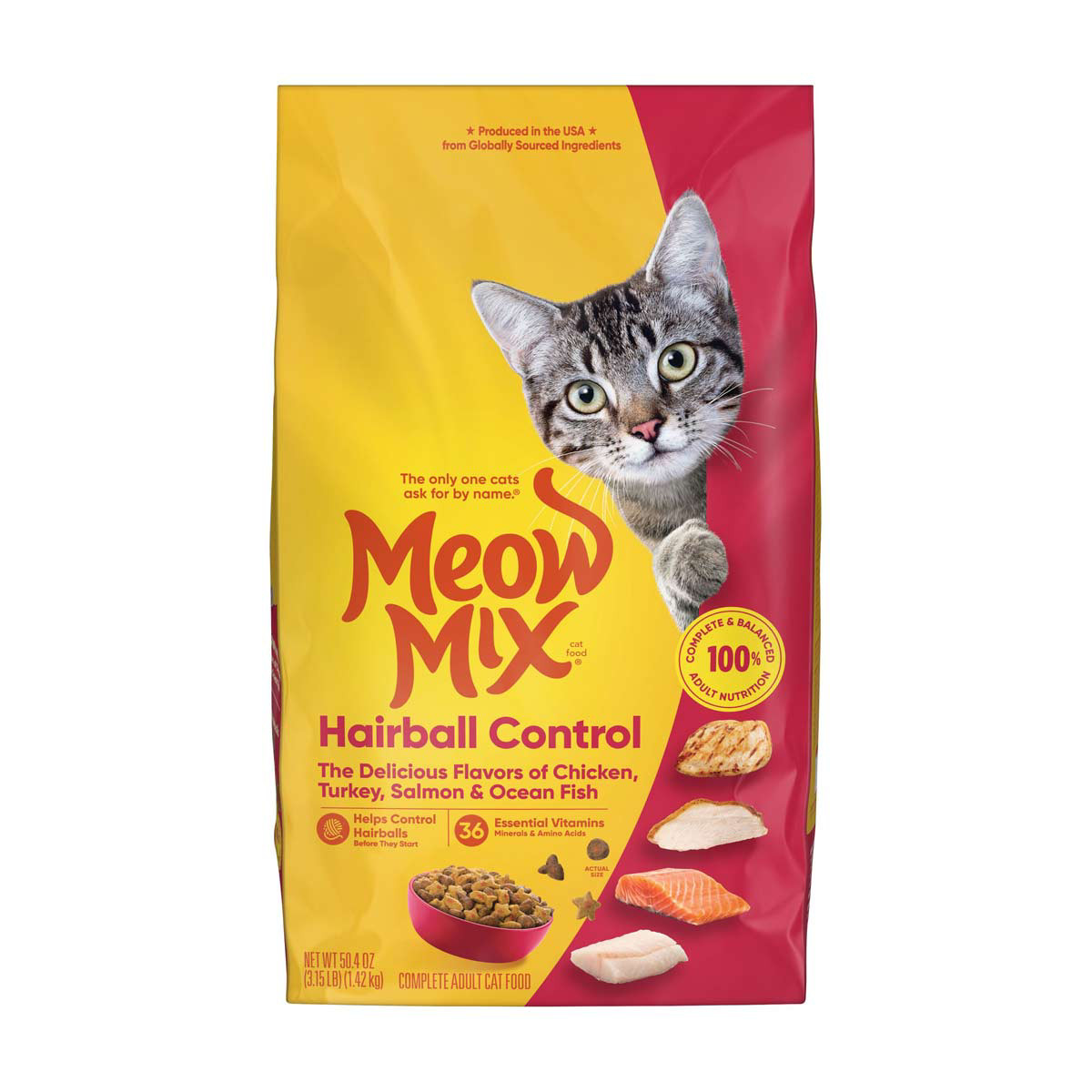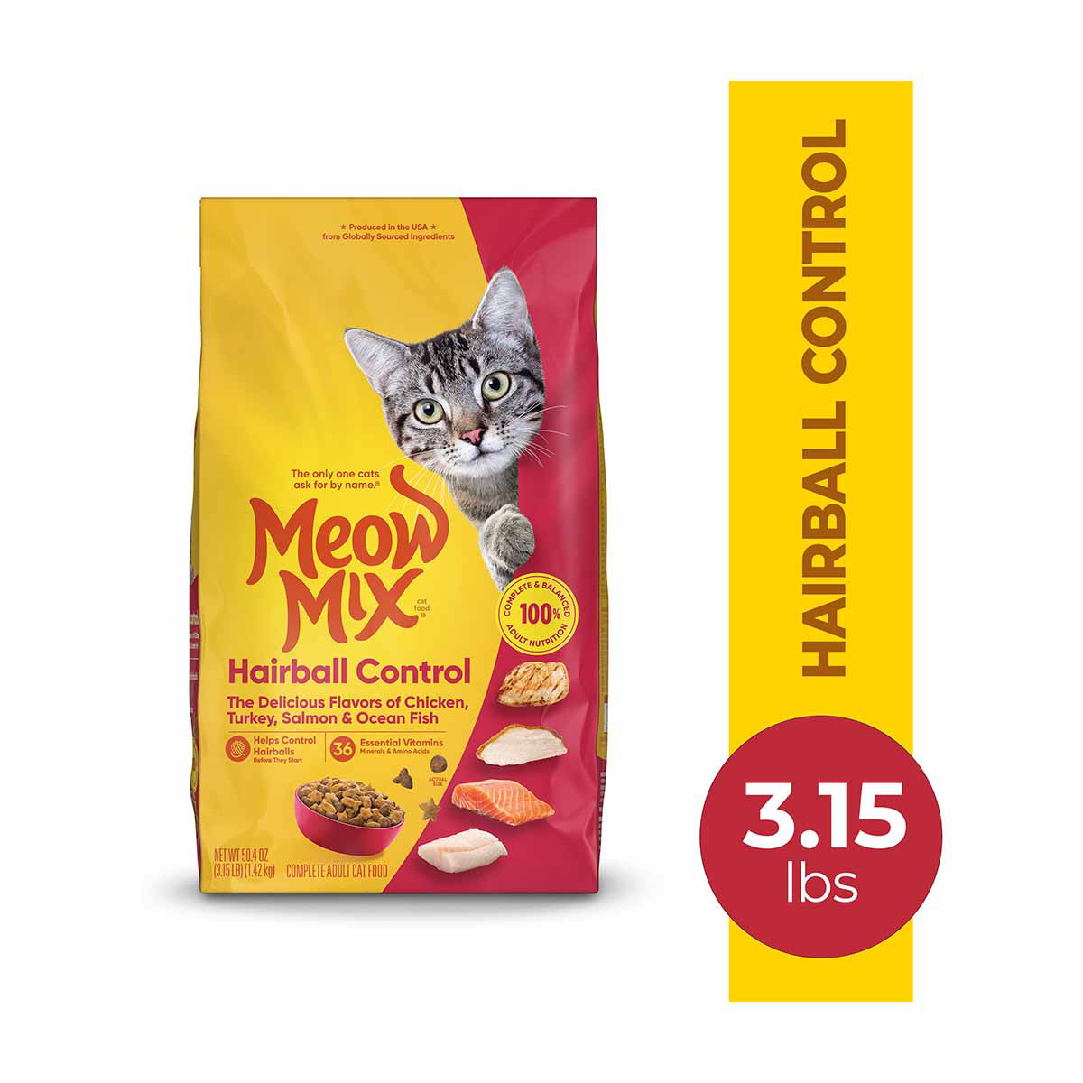 • Contains one (1) 3.15-pound bag of Meow Mix Hairball Control Dry Cat Food, now with a new look