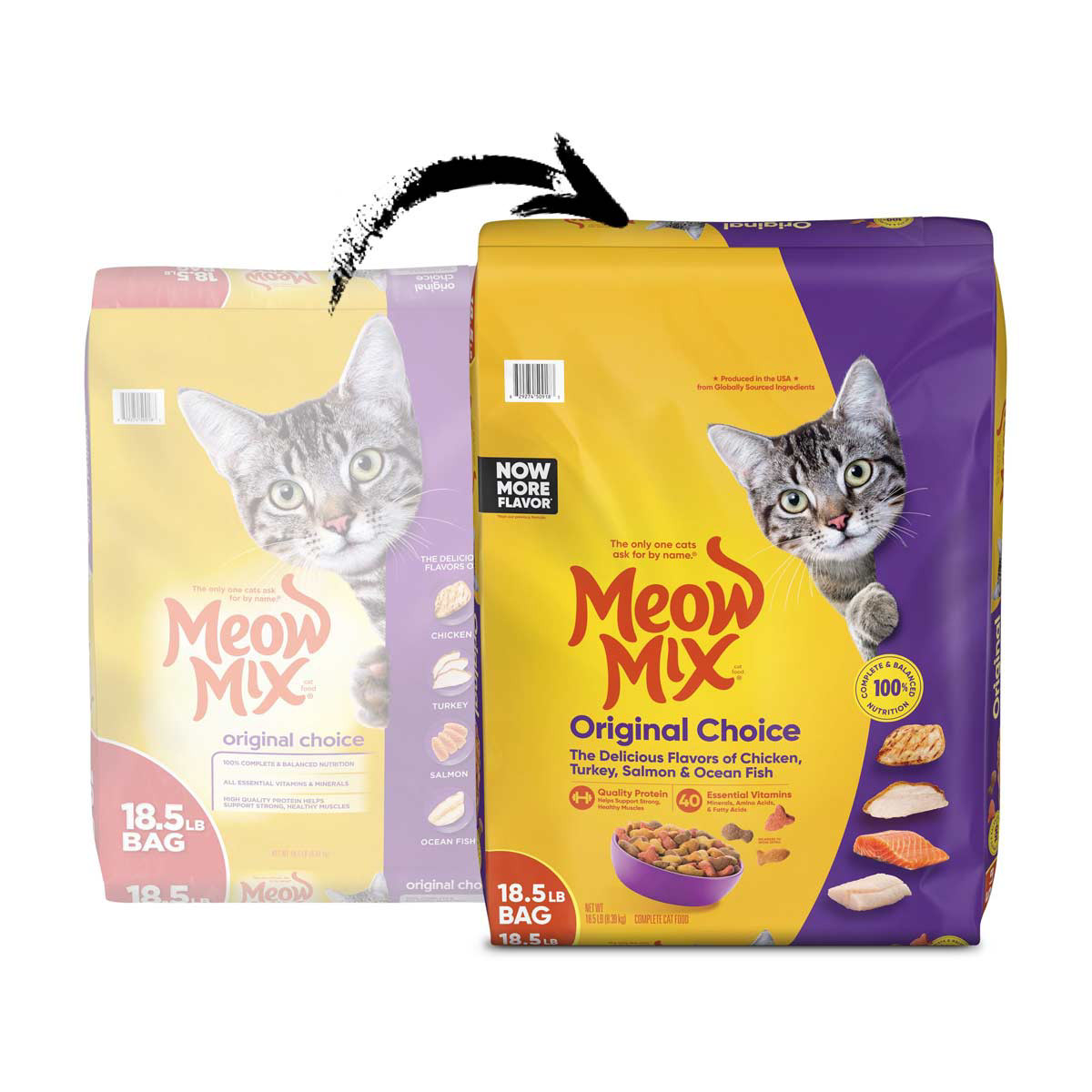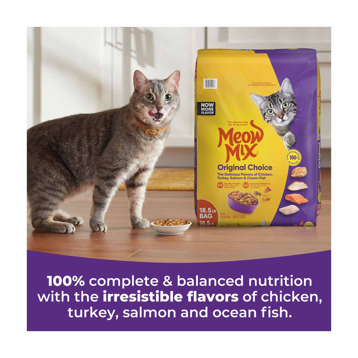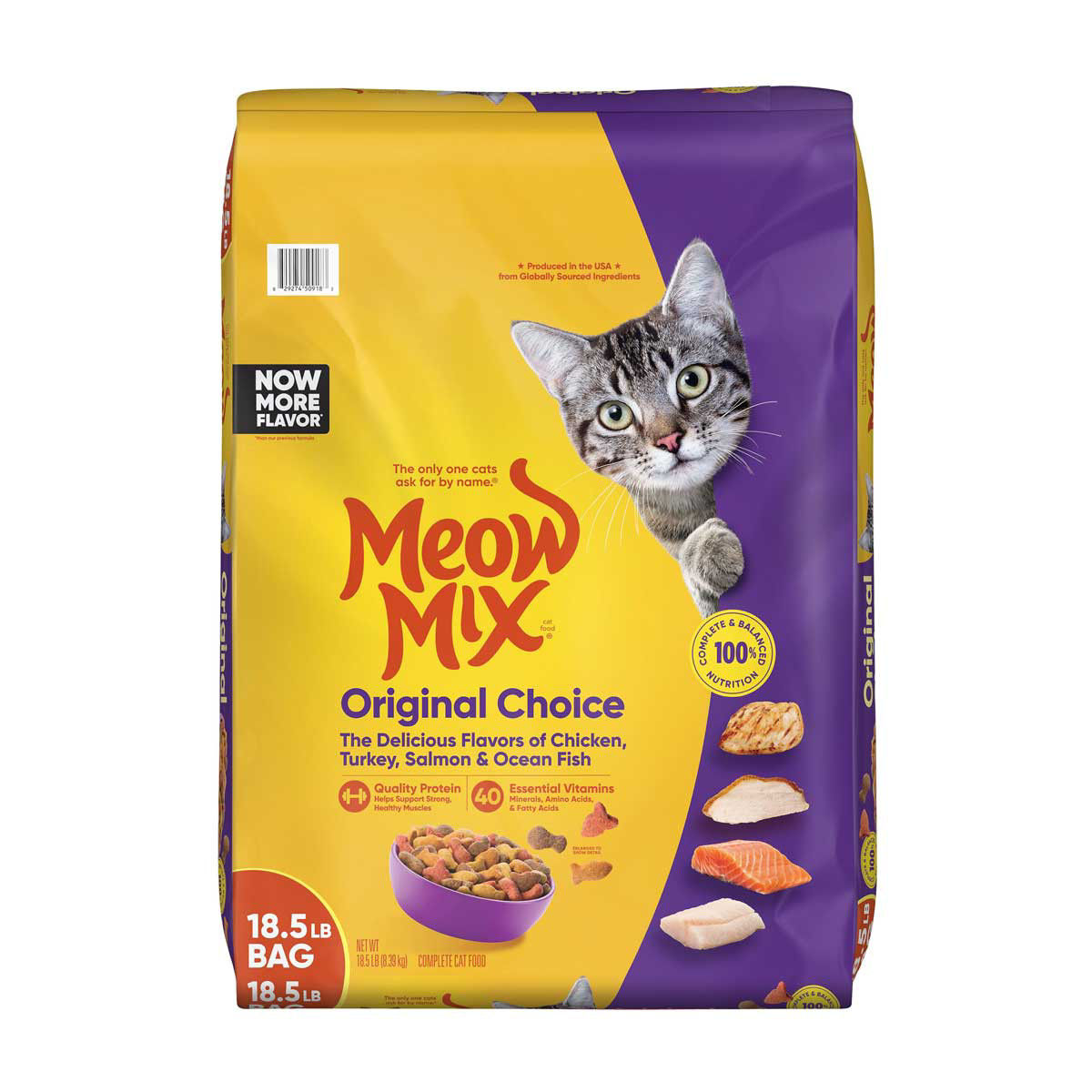 - Contains one (1) 18.5-pound bag of Meow Mix Original Choice Dry Cat Food