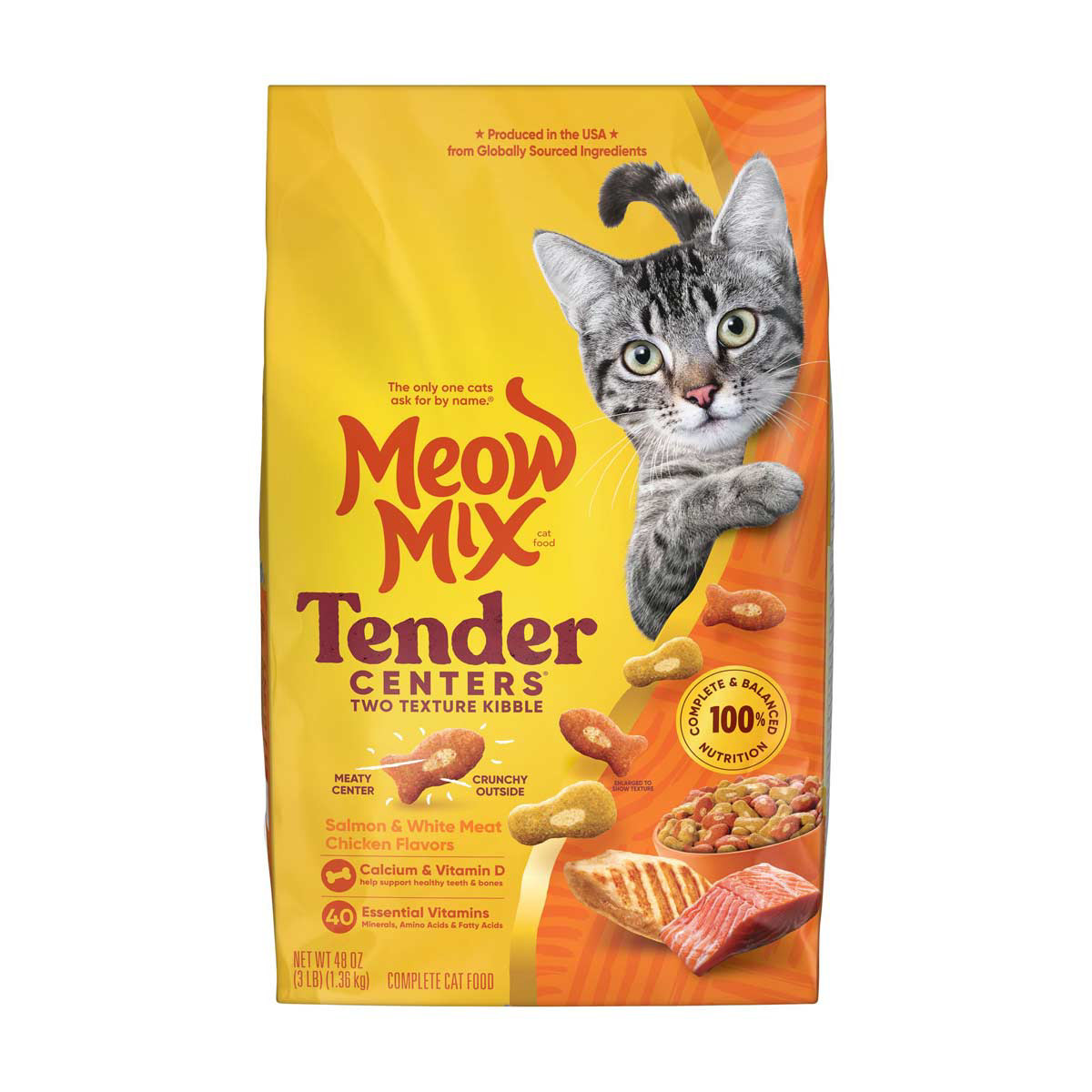 • Meow Mix Tender Centers Dry Cat Food, Salmon & White Meat Chicken Flavors, 3 Pound Bag