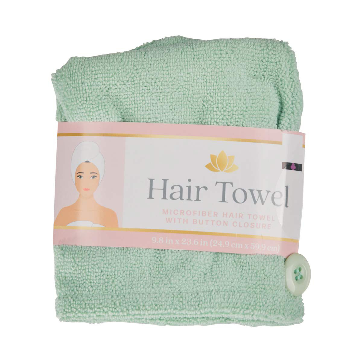 • Button closure keeps the towel securely wrapped for hands-free drying