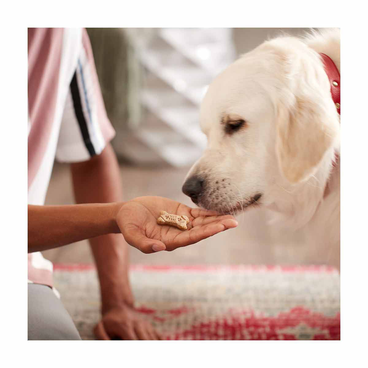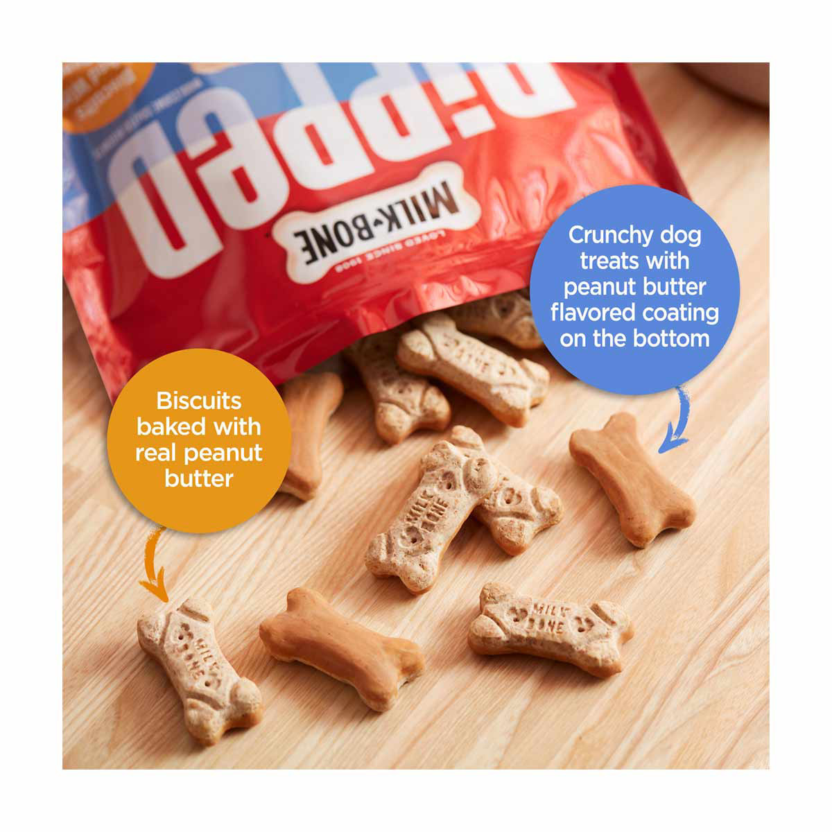 • Crunchy dog treats with peanut butter flavored coating on the bottom