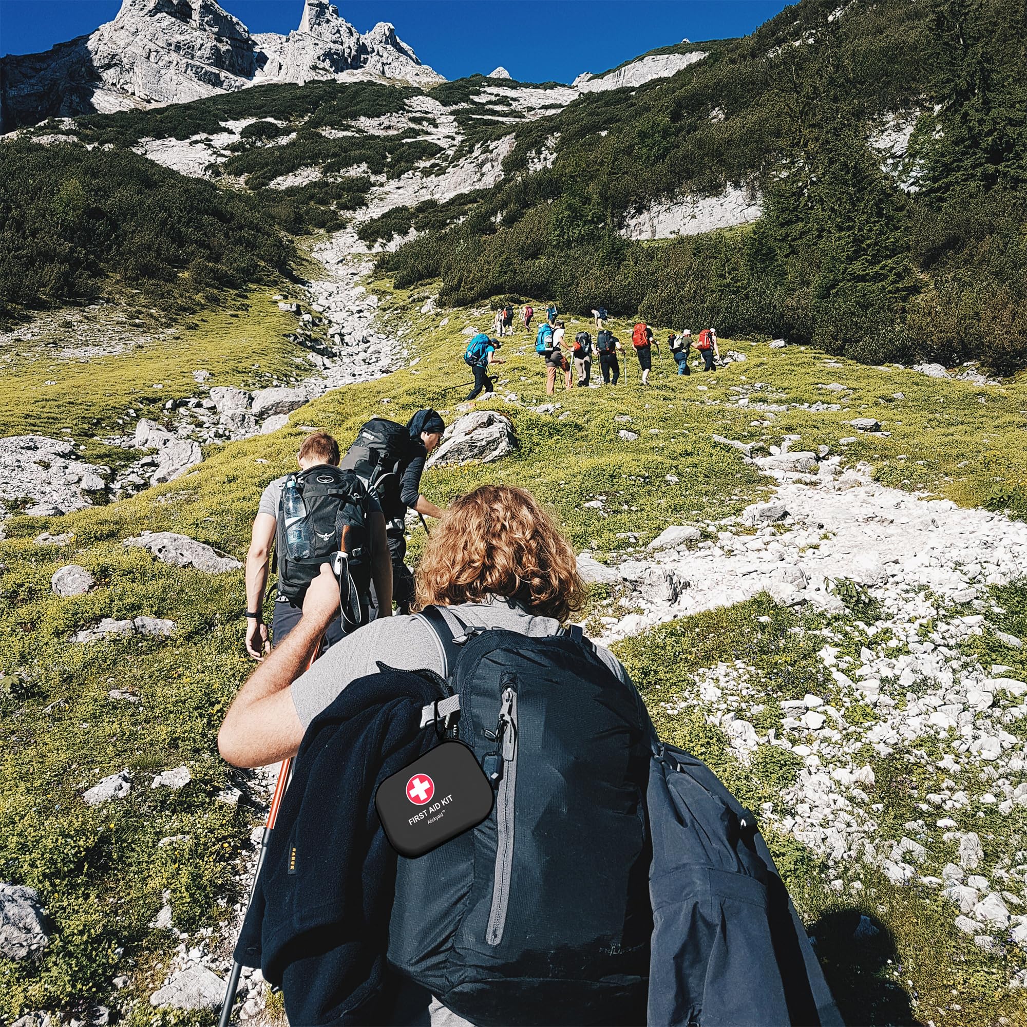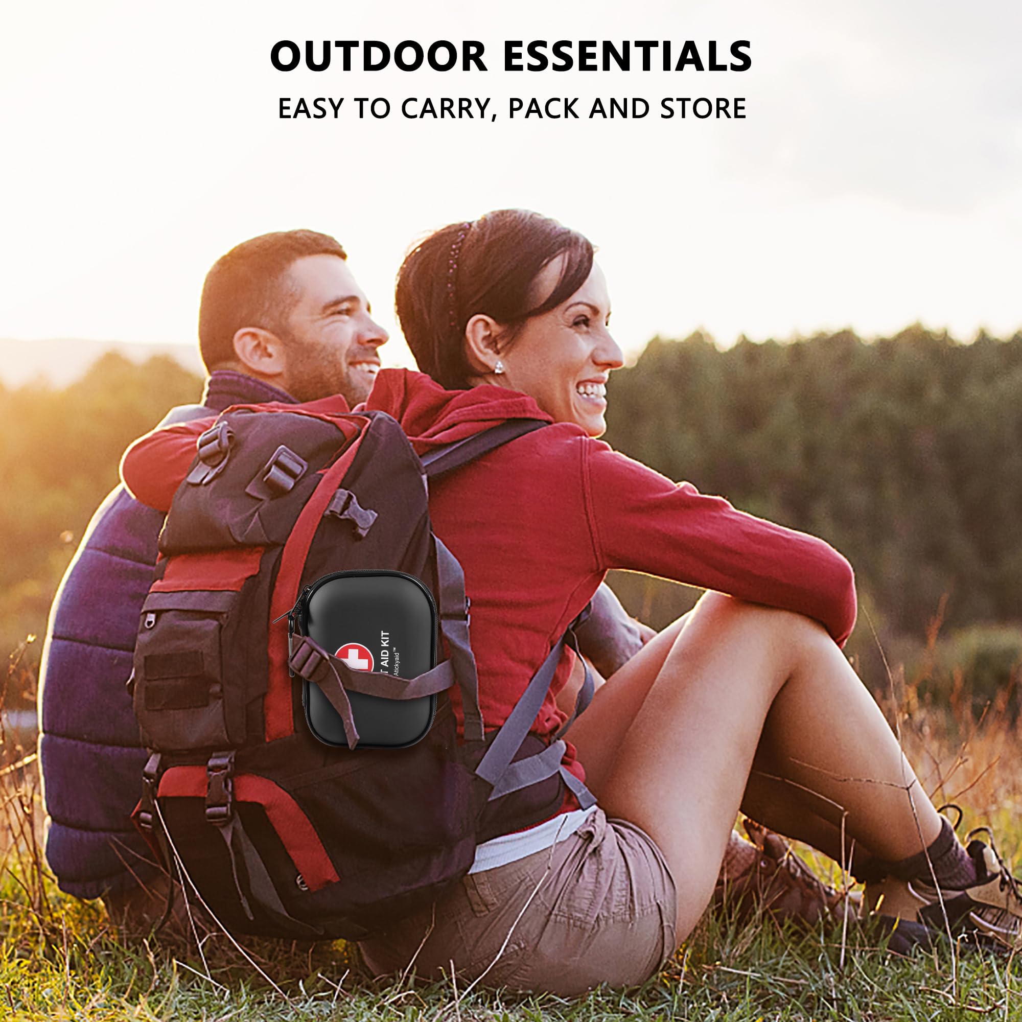 - PORTABLE DESIGN: Measuring 6.3"x4.7"x2.3"(16x12x6cm) and weighing 0.62 lbs(283g). The compact size of our medical kit makes it easy to carry and store in your backpack, car, or any other location you may need it. Whether you're going on a hiking or camping trip, or heading out on a road trip, our first aid kit will be there to provide you with the essential medical supplies you need in case of emergencies. This small emergency kit can also be easily hung on your backpack.