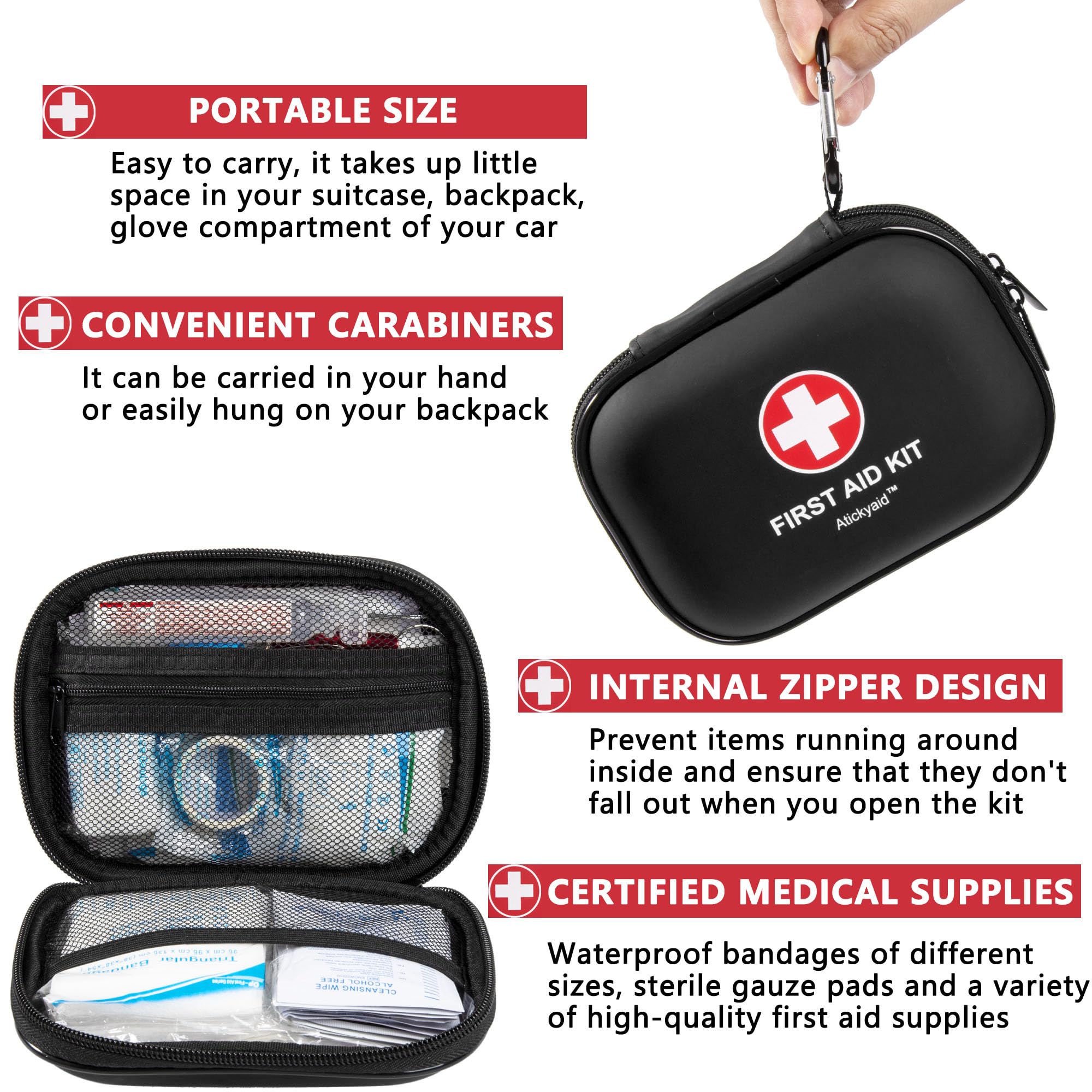 - COMPREHENSIVE CARE: With its comprehensive and varieties of medical supplies, this first aid kit is a great ideal for families, office, camping, hiking, boating, car, sports, travel, road trips, workplace, school. Whether you're at home or outdoors, this mini medical kit is the perfect choice for anyone who wants to be ready for anything.