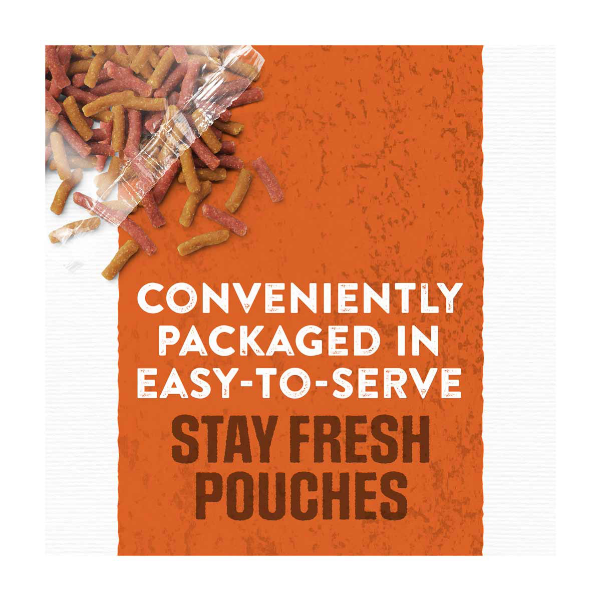 • Stay-fresh soft dry dog food pouches preserve flavor and tender texture