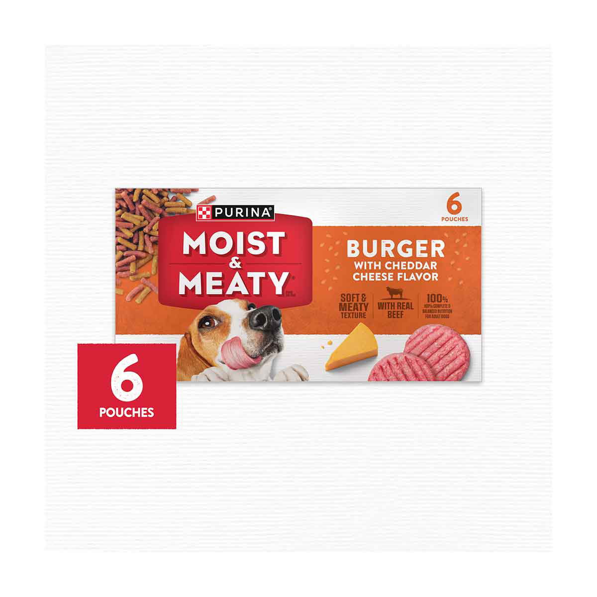 Moist & Meaty Burger with Cheddar Cheese Flavor Soft Dog Food Pouches, 6 ct