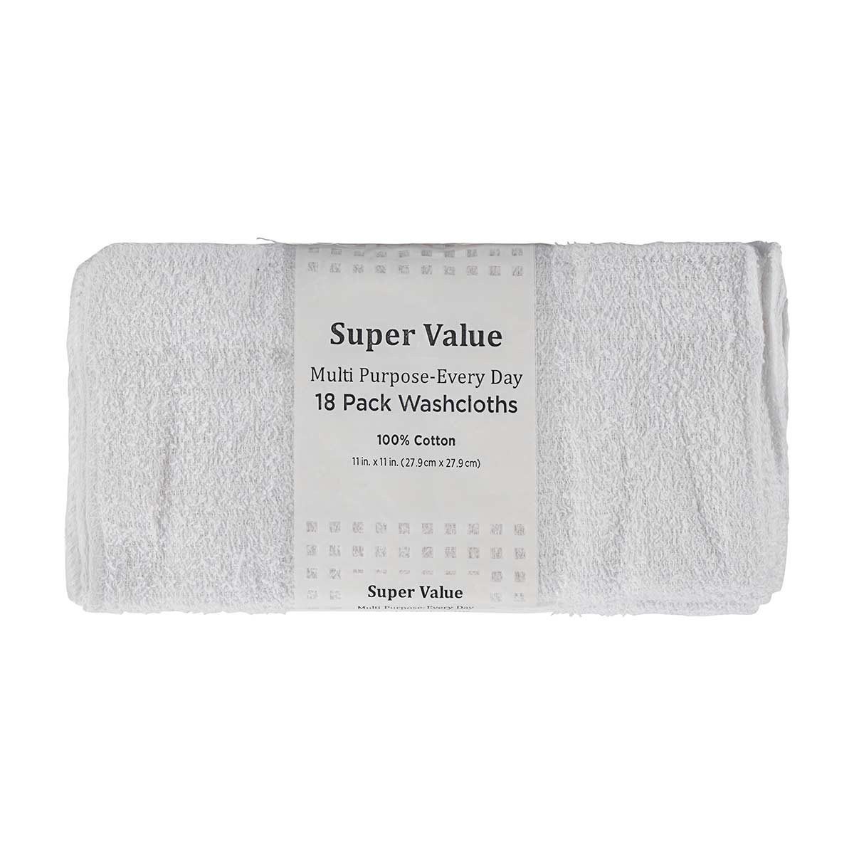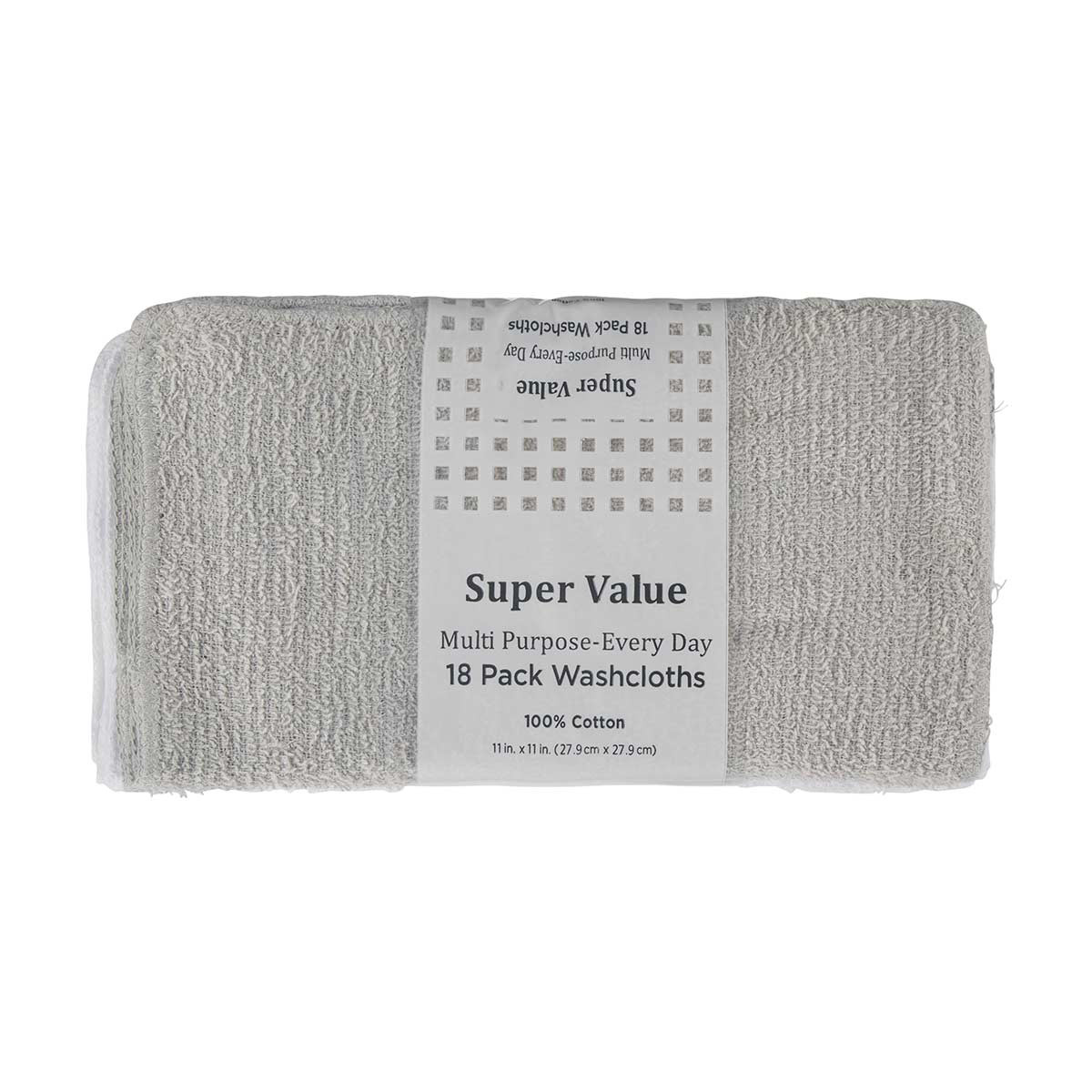 Multi-purpose Everyday Washcloths, 100% Cotton, 18 pk- Assorted