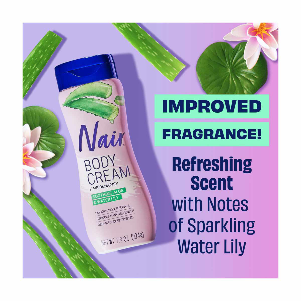 Nair Body Cream Soothing Aloe & Water Lily Hair Remover, 7.9 oz