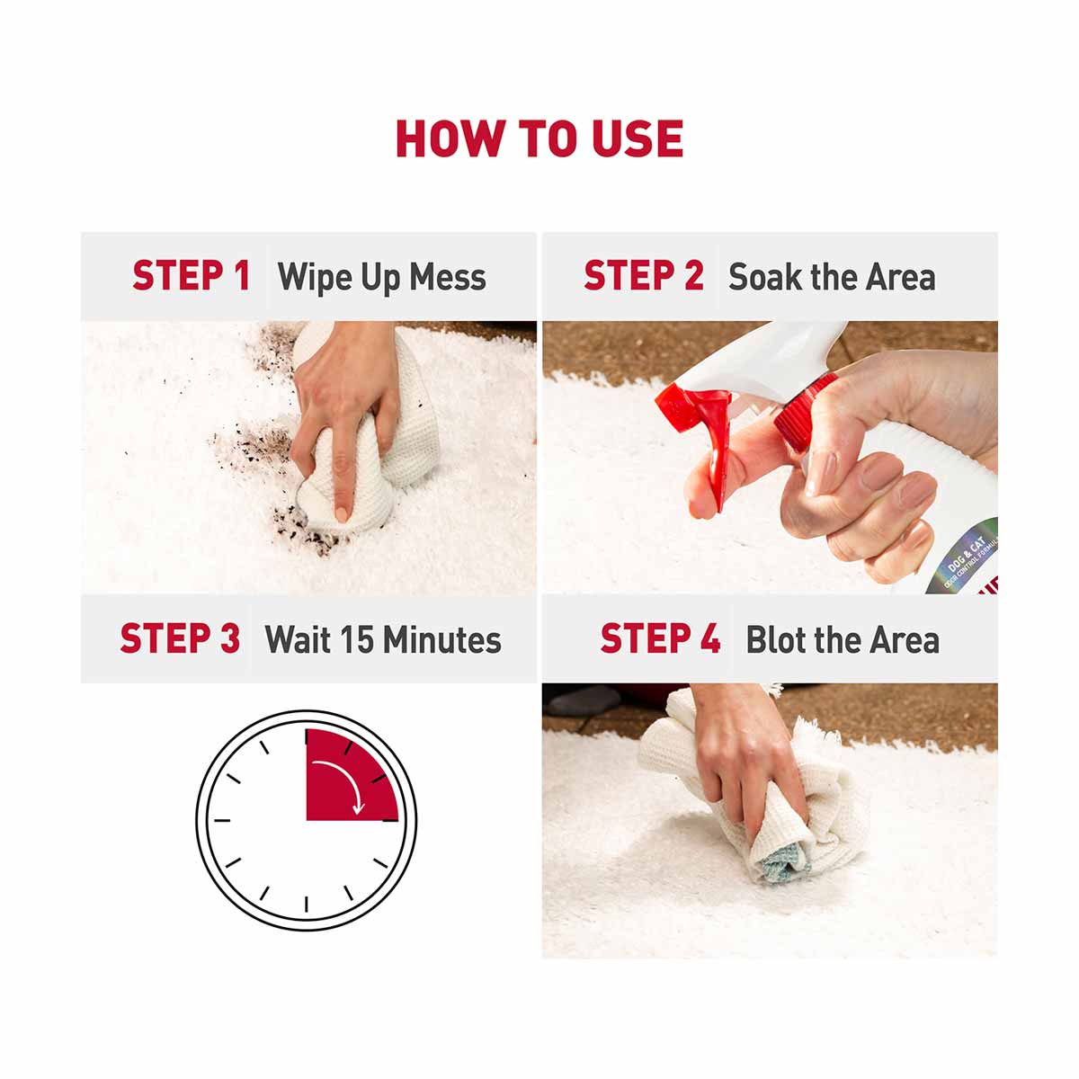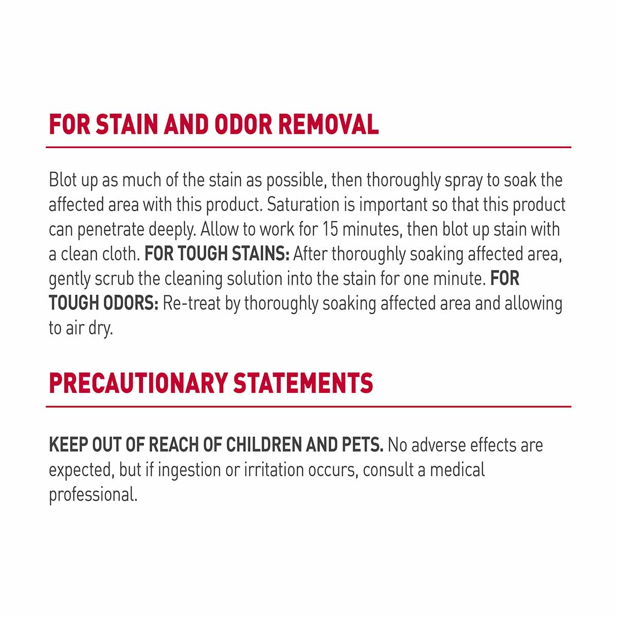 - SPOT STAIN & ODOR REMOVER: Begins to break down and remove stains immediately on contact.
