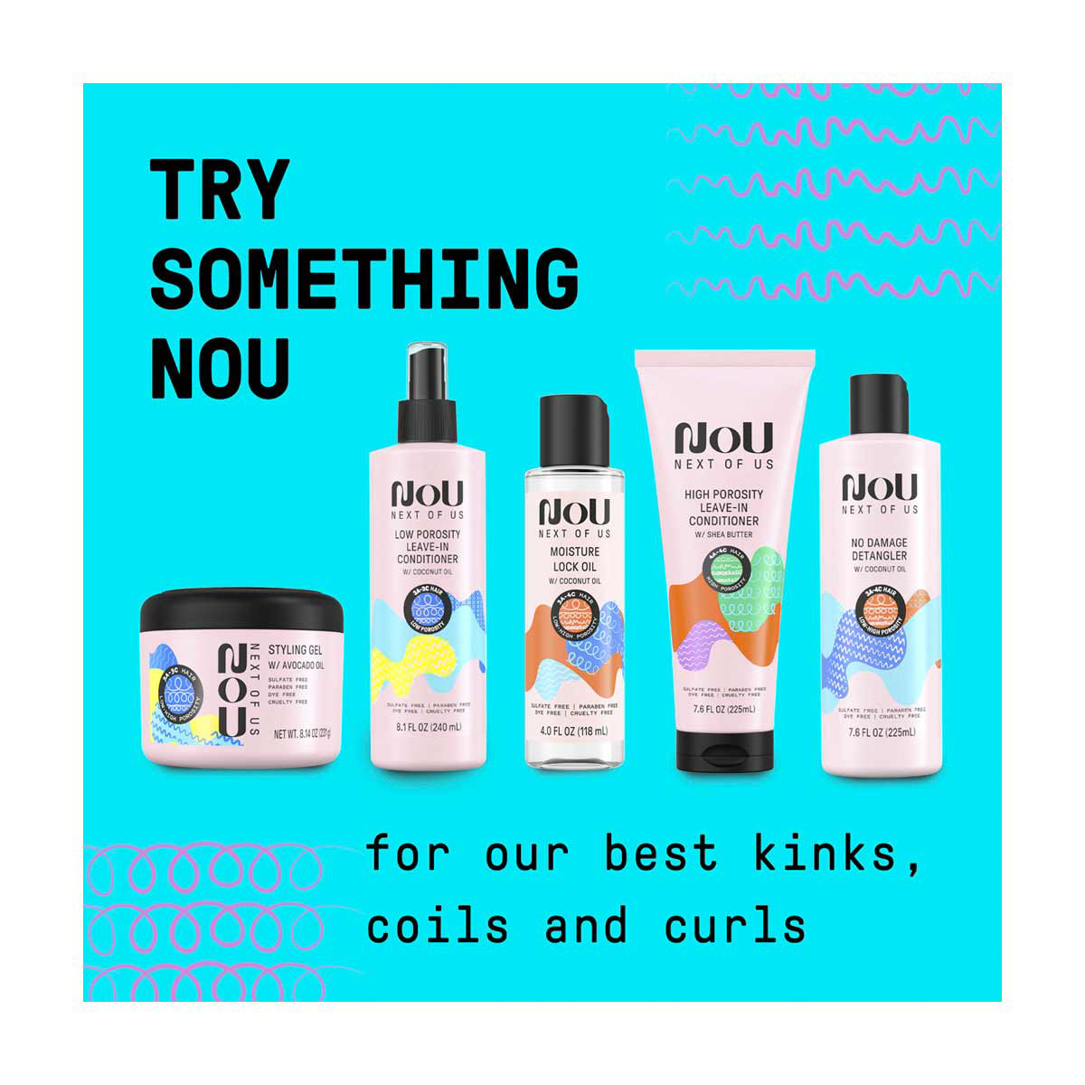 - NOU Nourishing Moisture Conditioner for curly and coily hair nourishes and hydrates hair for soft, flexible curls