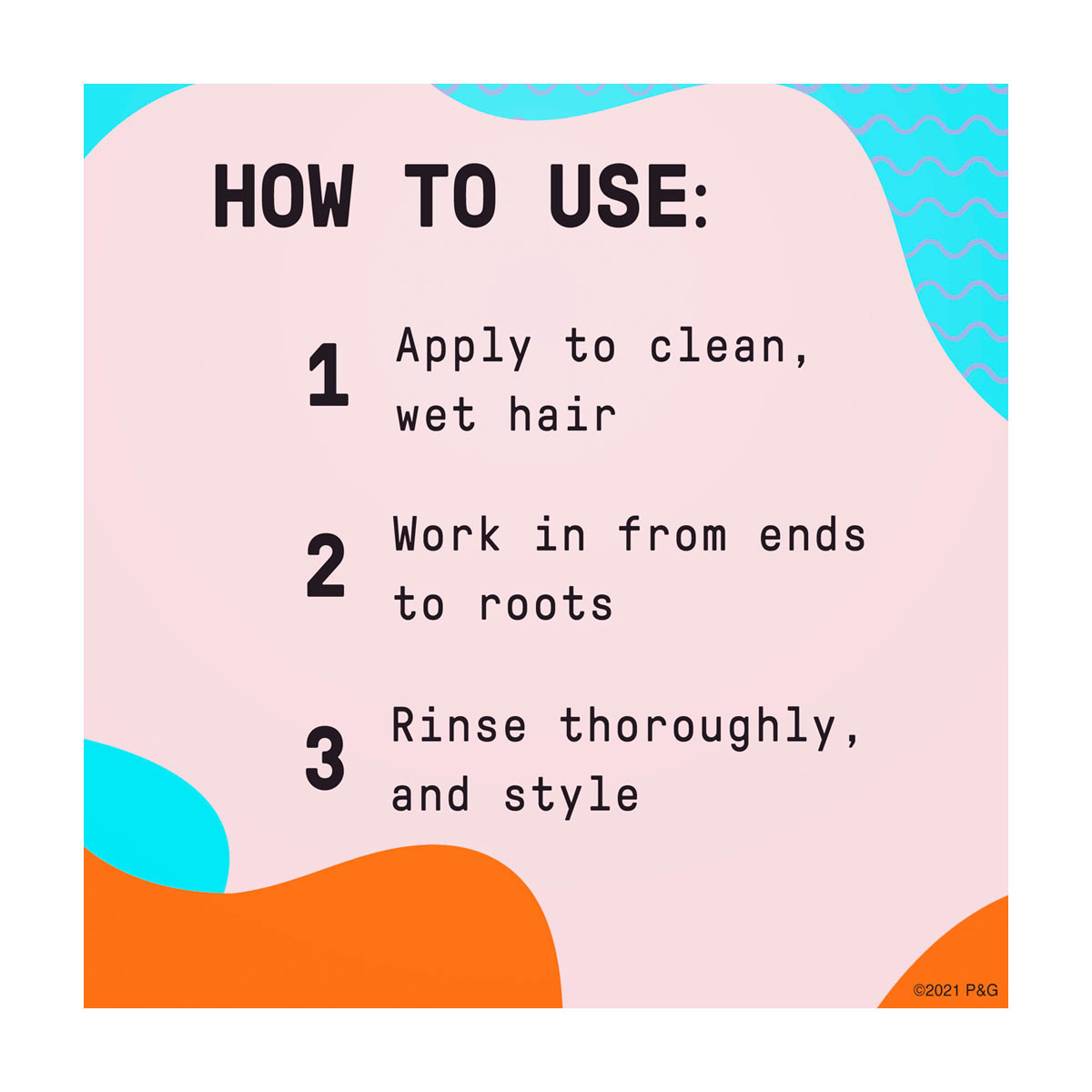 - Apply to clean, wet hair, working from ends to roots. Rinse thoroughly, and style