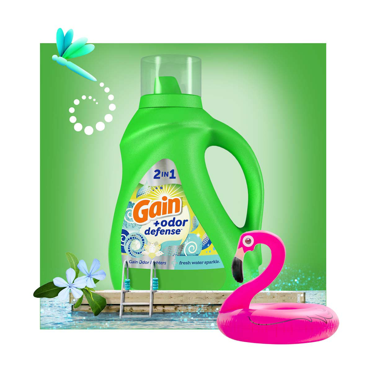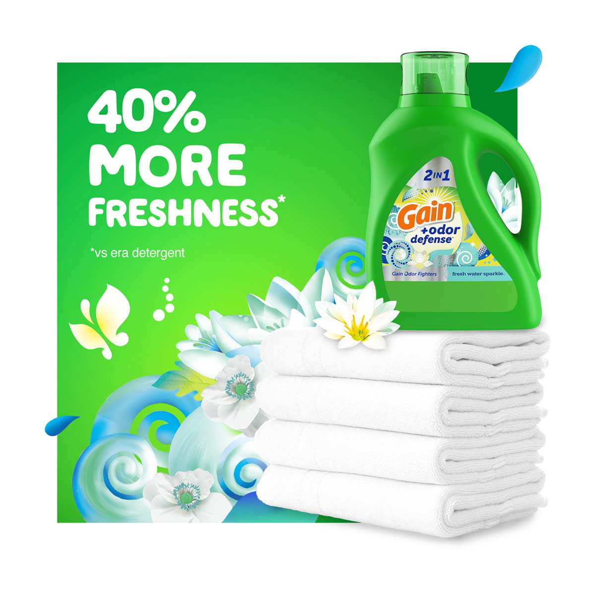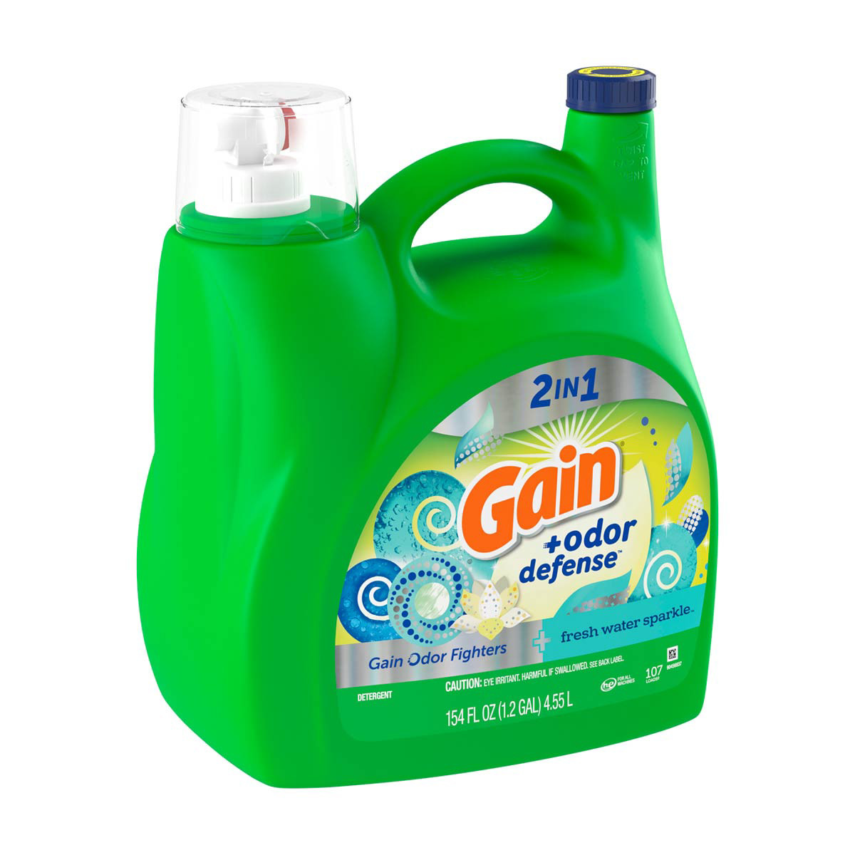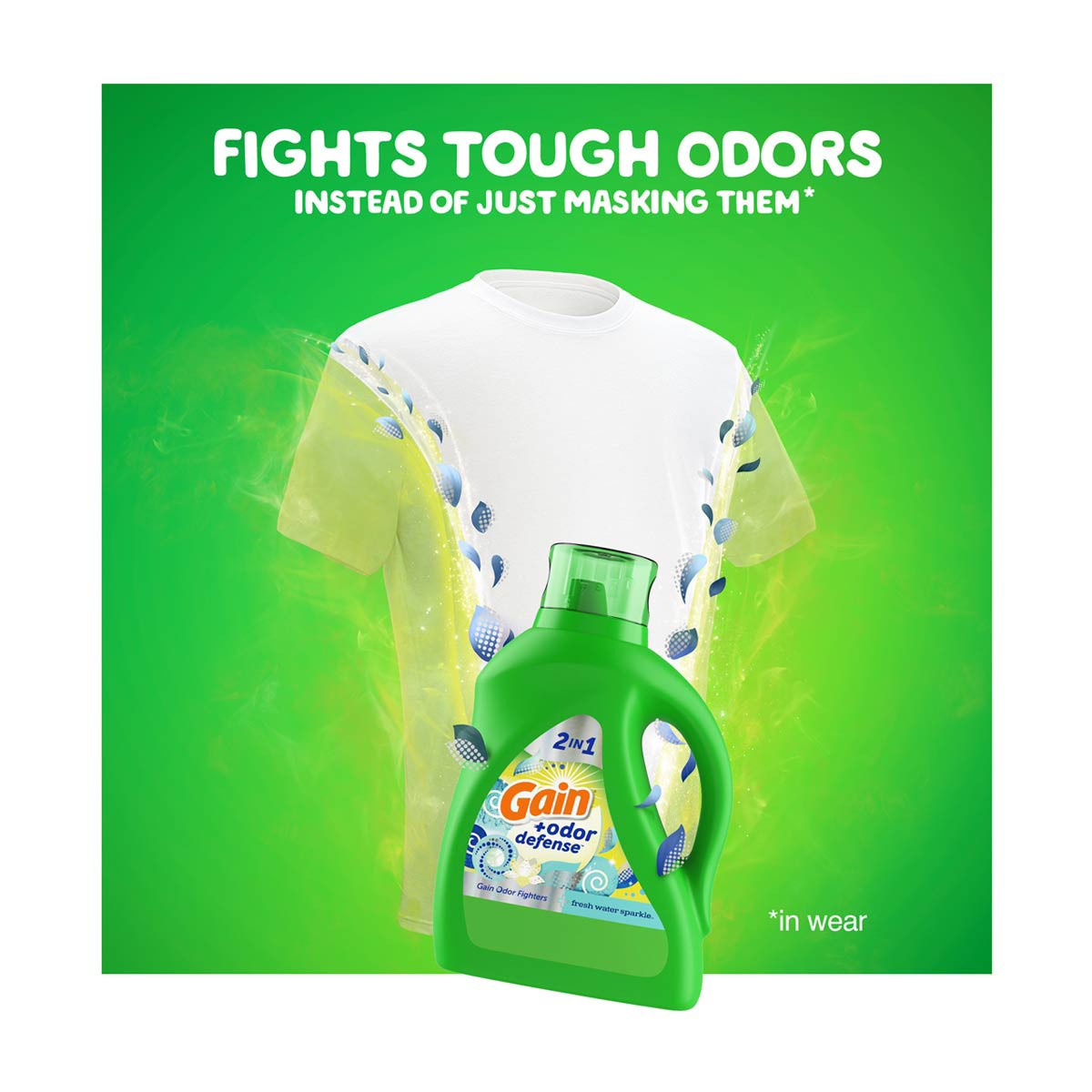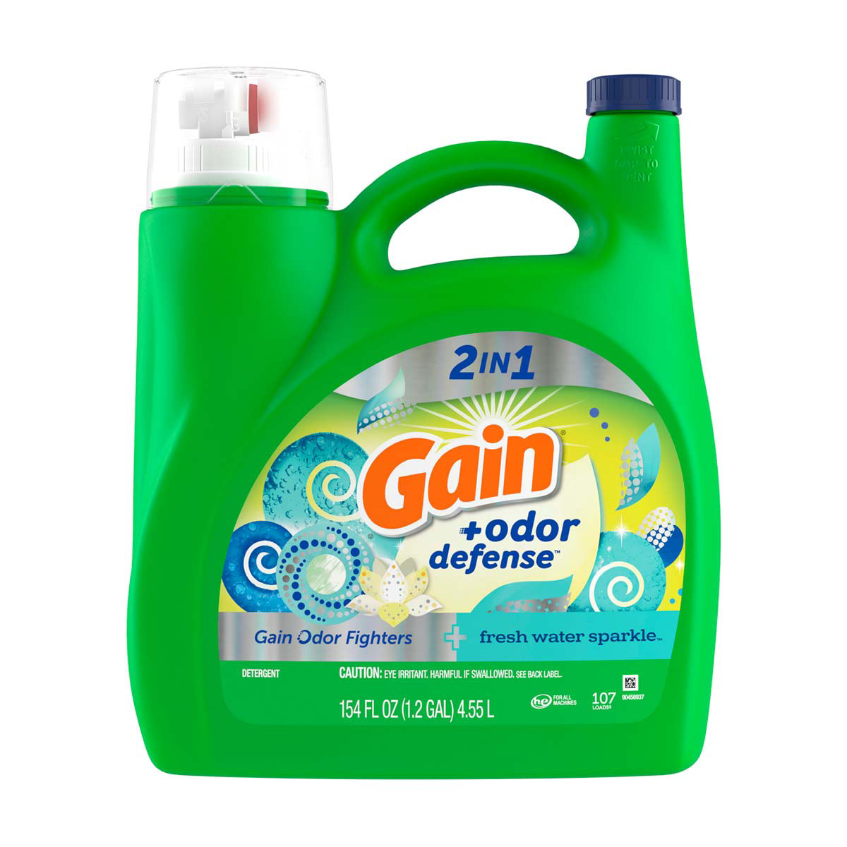 • Odor Defense Liquid Laundry Detergent, Fresh Water Sparkle, 154 oz, 107 Loads, HE Compatible