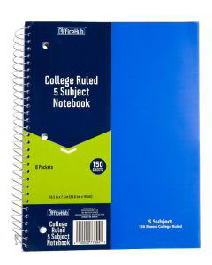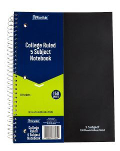 Office Hub College Ruled 5 Subject Spiral Notebook, Assorted