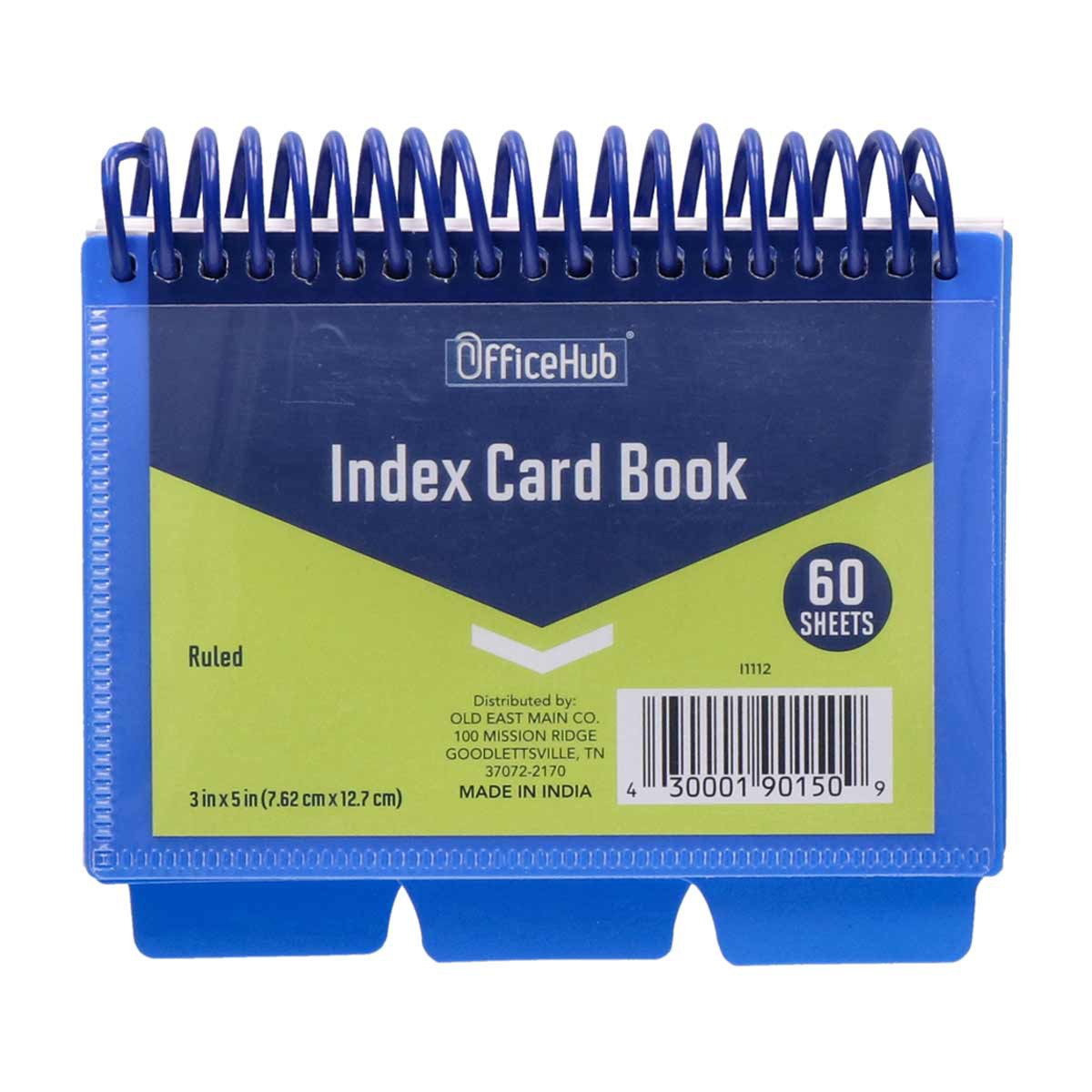 OfficeHub Index Card Book, Ruled, 3 in x 5 in, 60 Sheets - Assorted