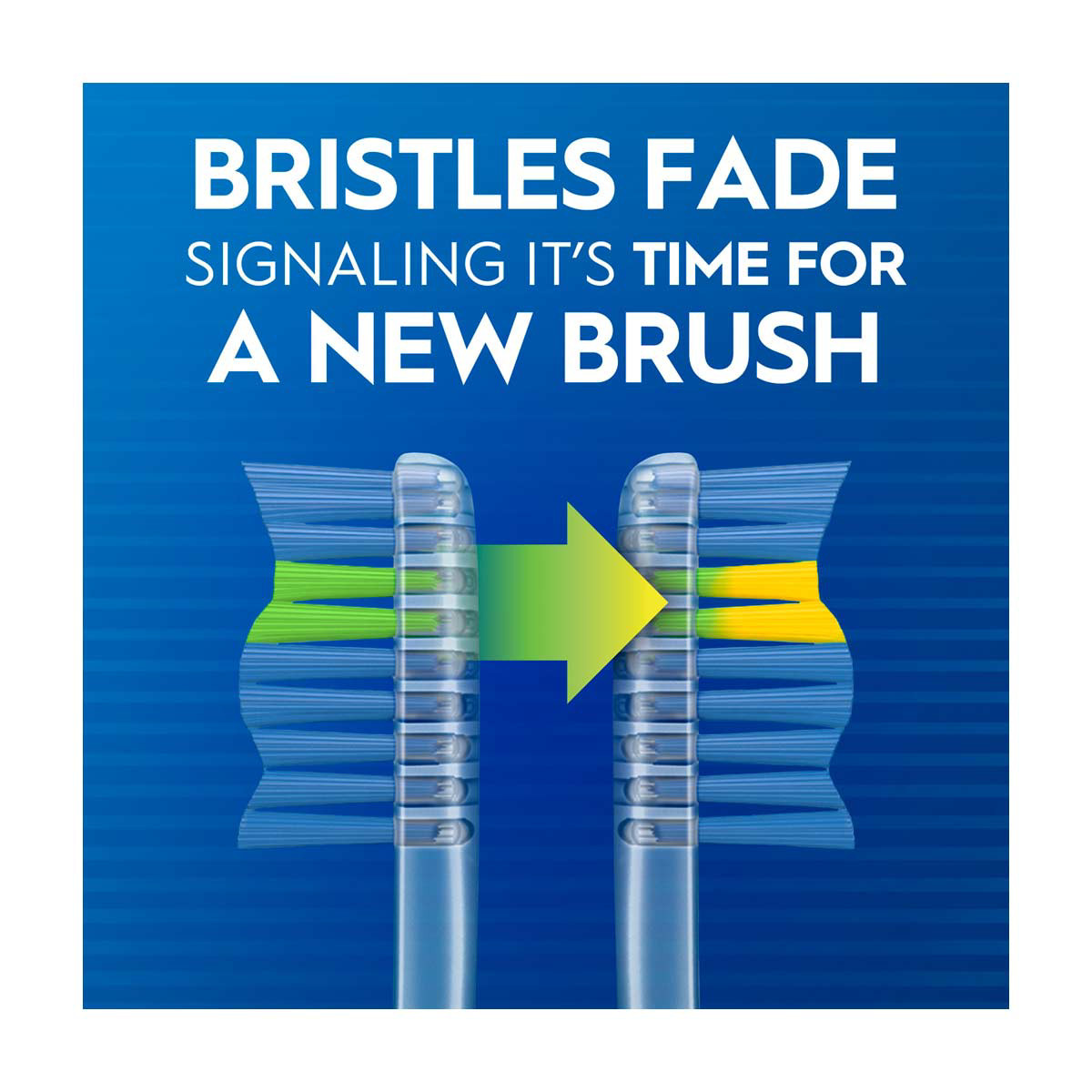 • Bristles fade from green to yellow to signal it is time to replace your toothbrush